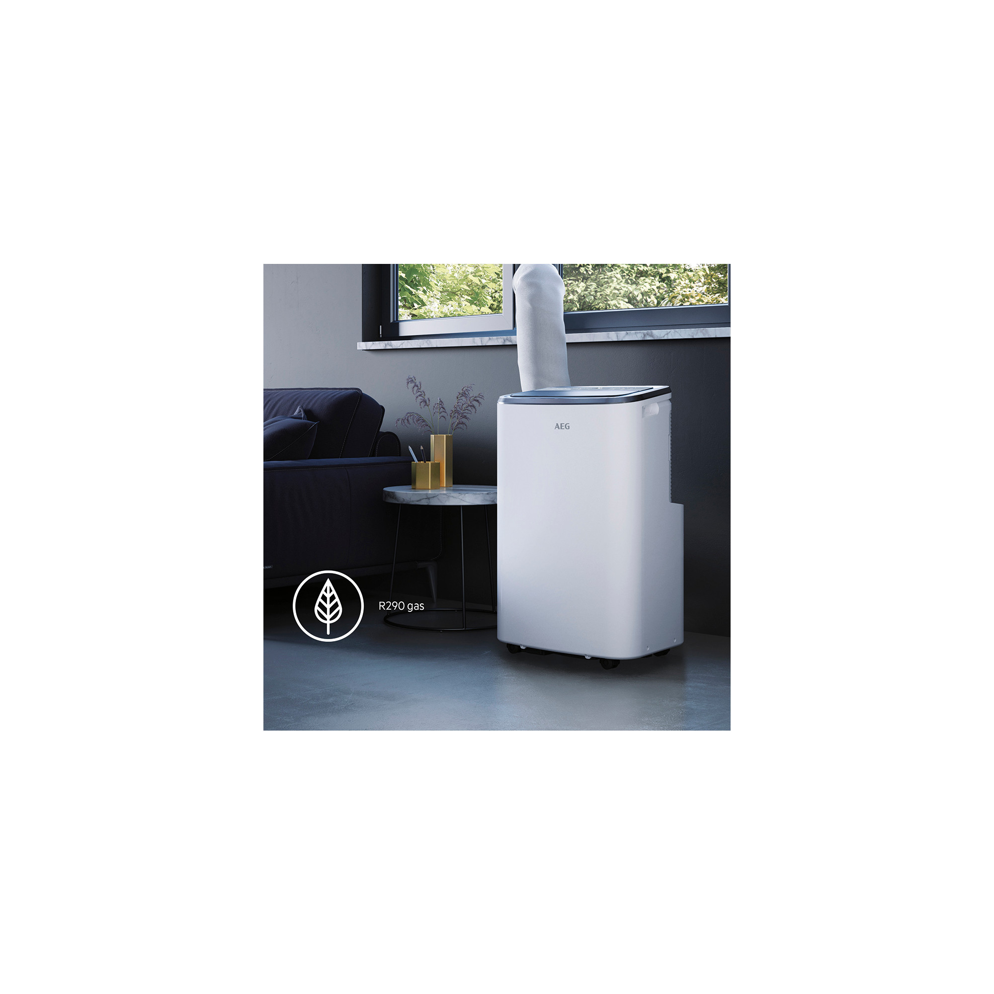 Imagina un verano sin sofoco, gracias al Aire Acondicionado Portátil AEG AXP35U538CW ChillFlex Pro . Este dispositivo, además de brindarte una frescura constante, se adapta al entorno de tu hogar gracias a su diseño elegante y de vanguardia. Sin importar si tu residencia es grande o pequeña, es capaz de climatizar espacios de 40 a 50 m². Pero eso no es todo, además de su función de enfriamiento, también incorpora un ventilador y un deshumidificador. Y si te preocupa el impacto ambiental, puedes relajarte, ya que este aire acondicionado utiliza refrigerante sostenible R290. Todo ello puedes controlarlo cómodamente con su mando a distancia y su pantalla táctil LED.