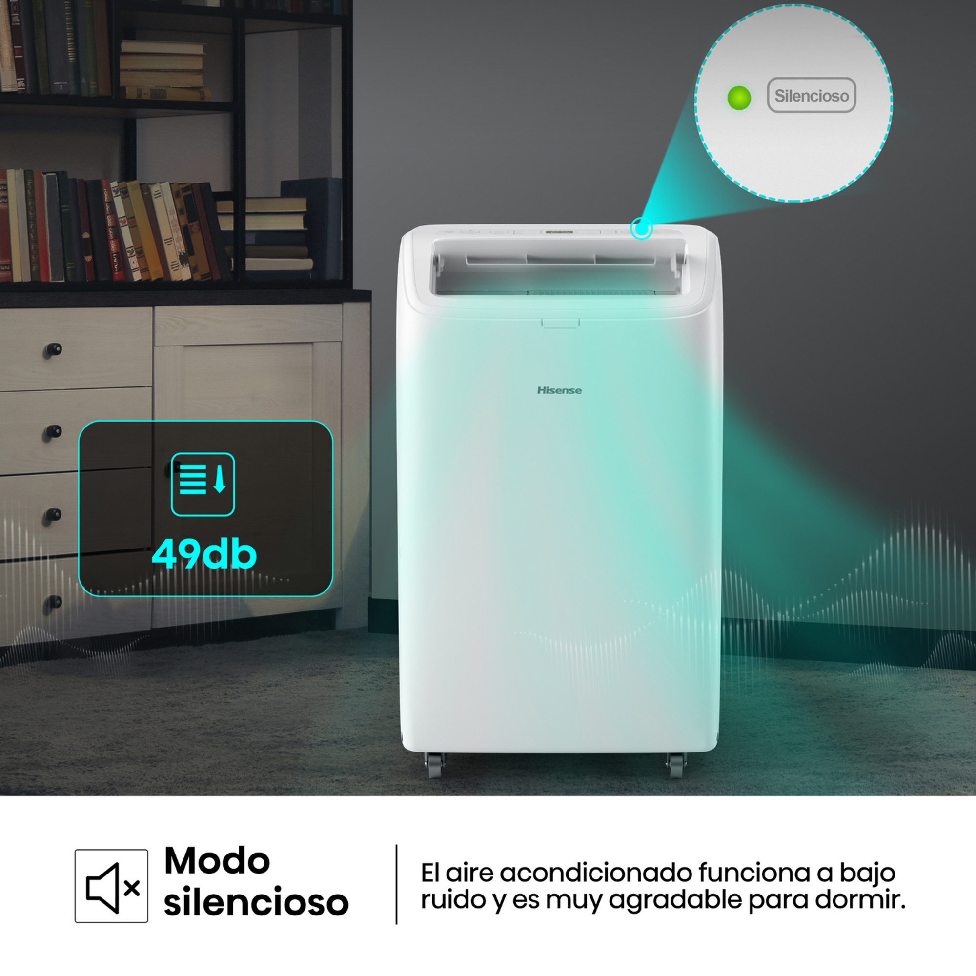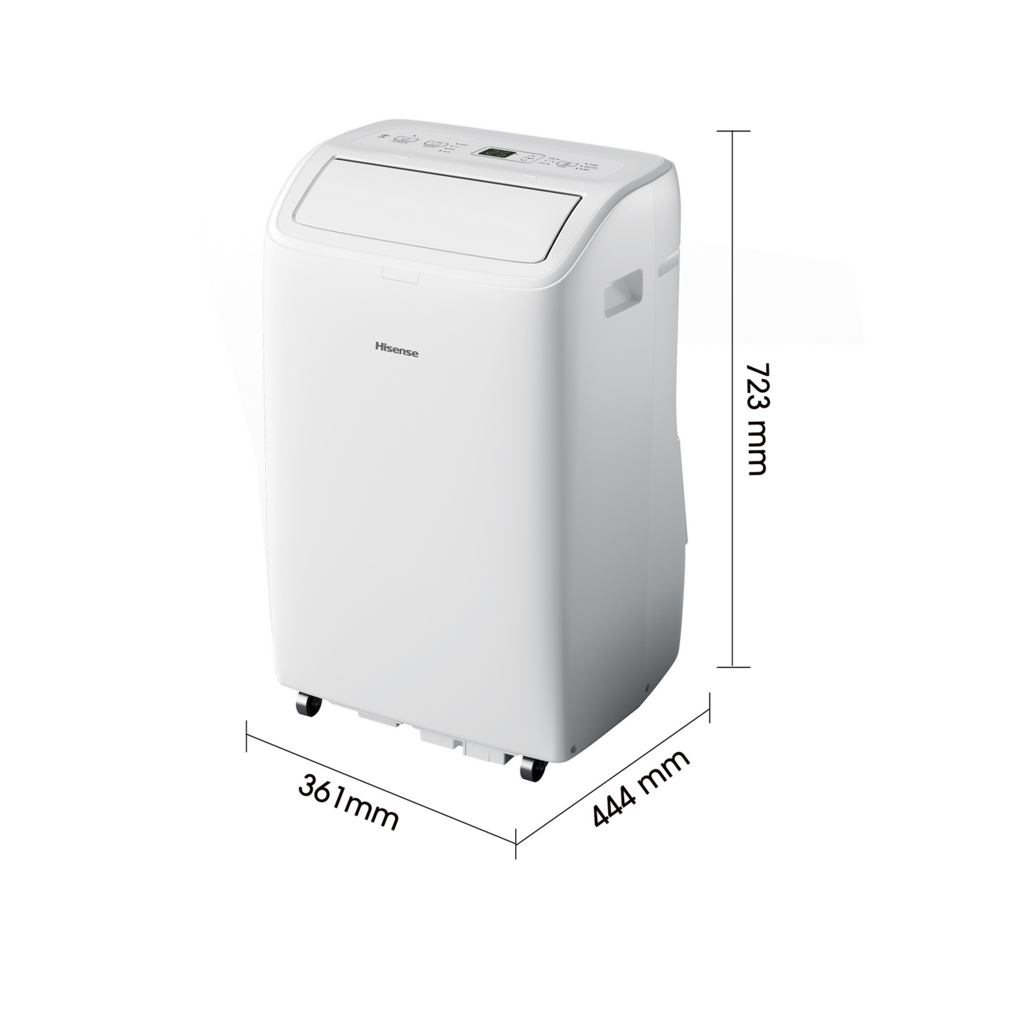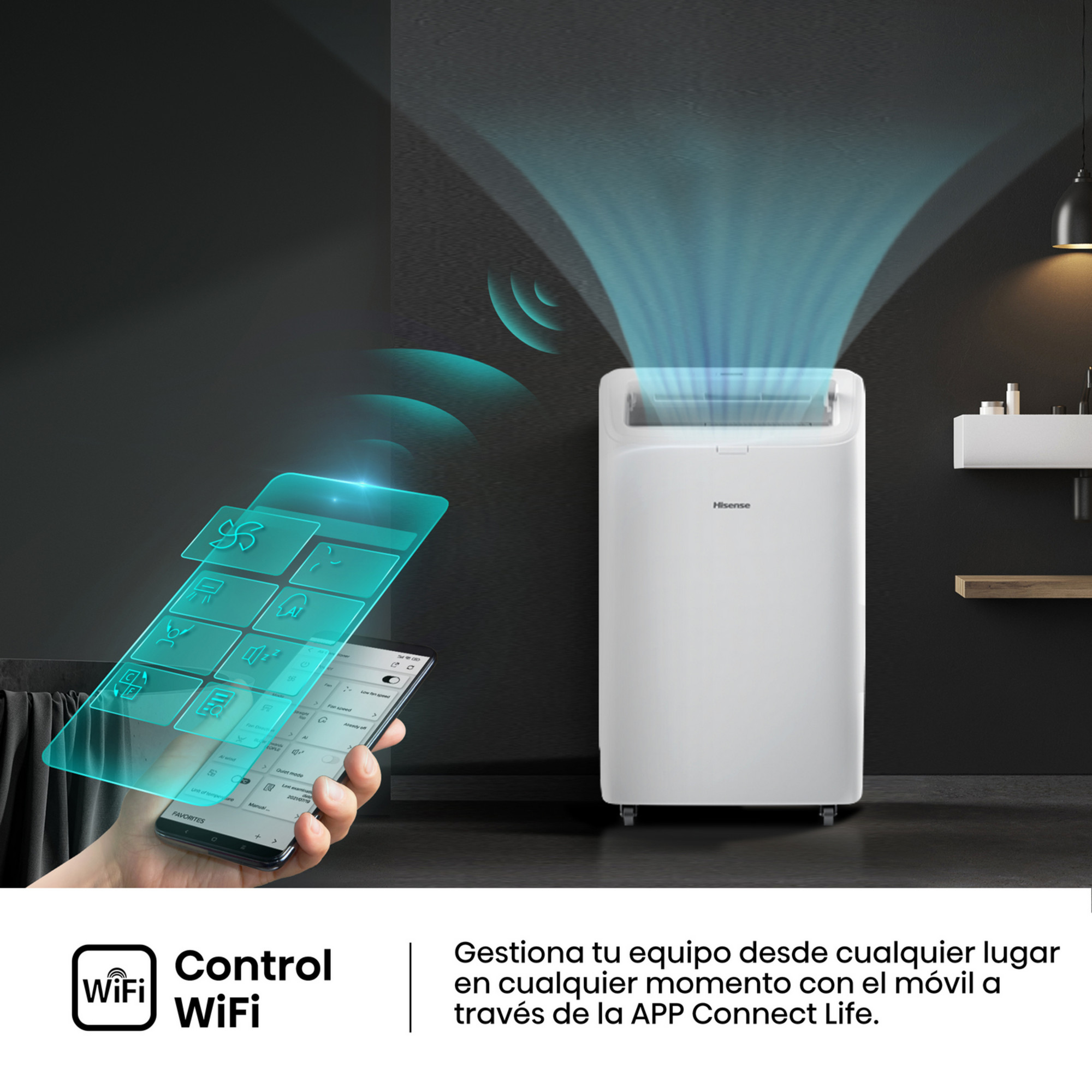 Aire acondicionado portátil – Hisense APC09QC, 2236 fg/h, 3 velocidades, Deshumidificador, Super Cool, Mando a distancia, Kit Ventana, Wi-Fi, Blanco