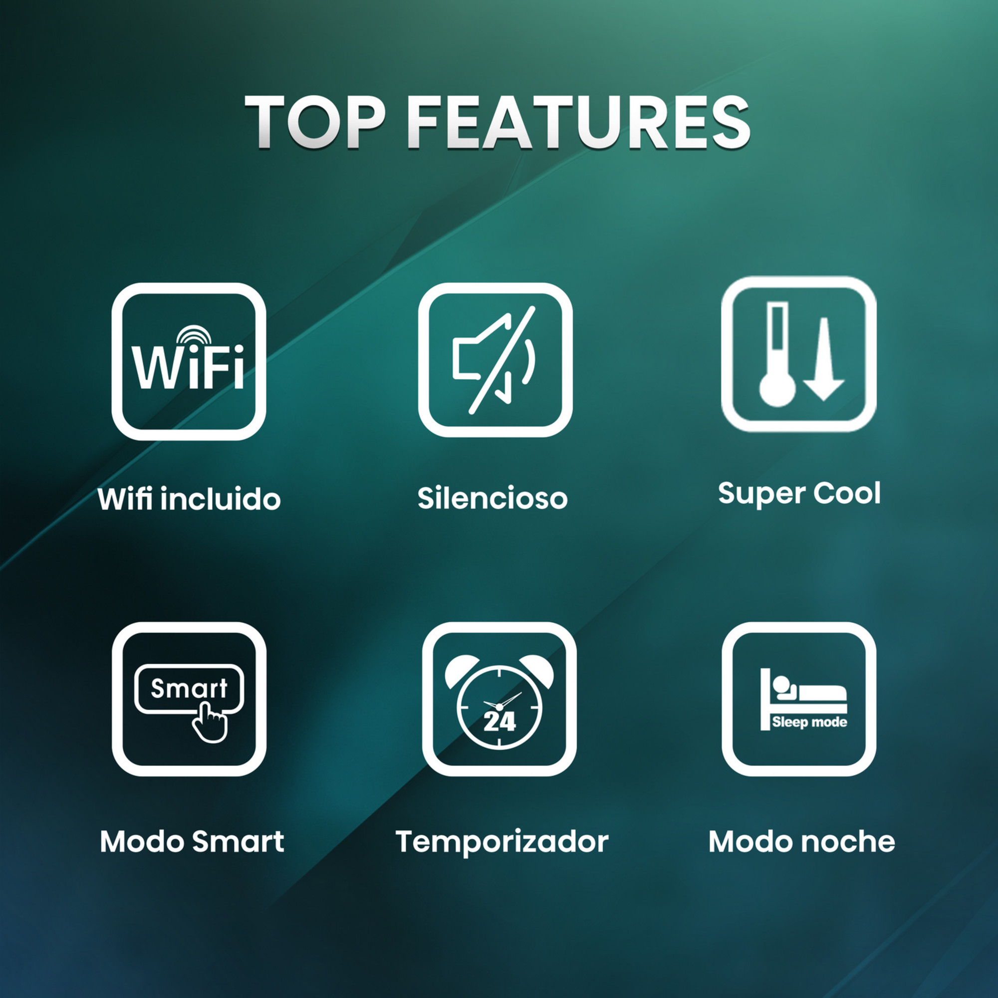 Ofreciendo mucho más que solo refrigeración, garantiza un ambiente óptimo en cualquier momento y lugar. Su función de deshumidificación elimina el exceso de humedad para un aire fresco y seco, mientras que el potente ventilador brinda una brisa refrescante en los días más calurosos. Además, con la función Supercool, experimenta una refrigeración rápida y eficiente para un confort instantáneo.