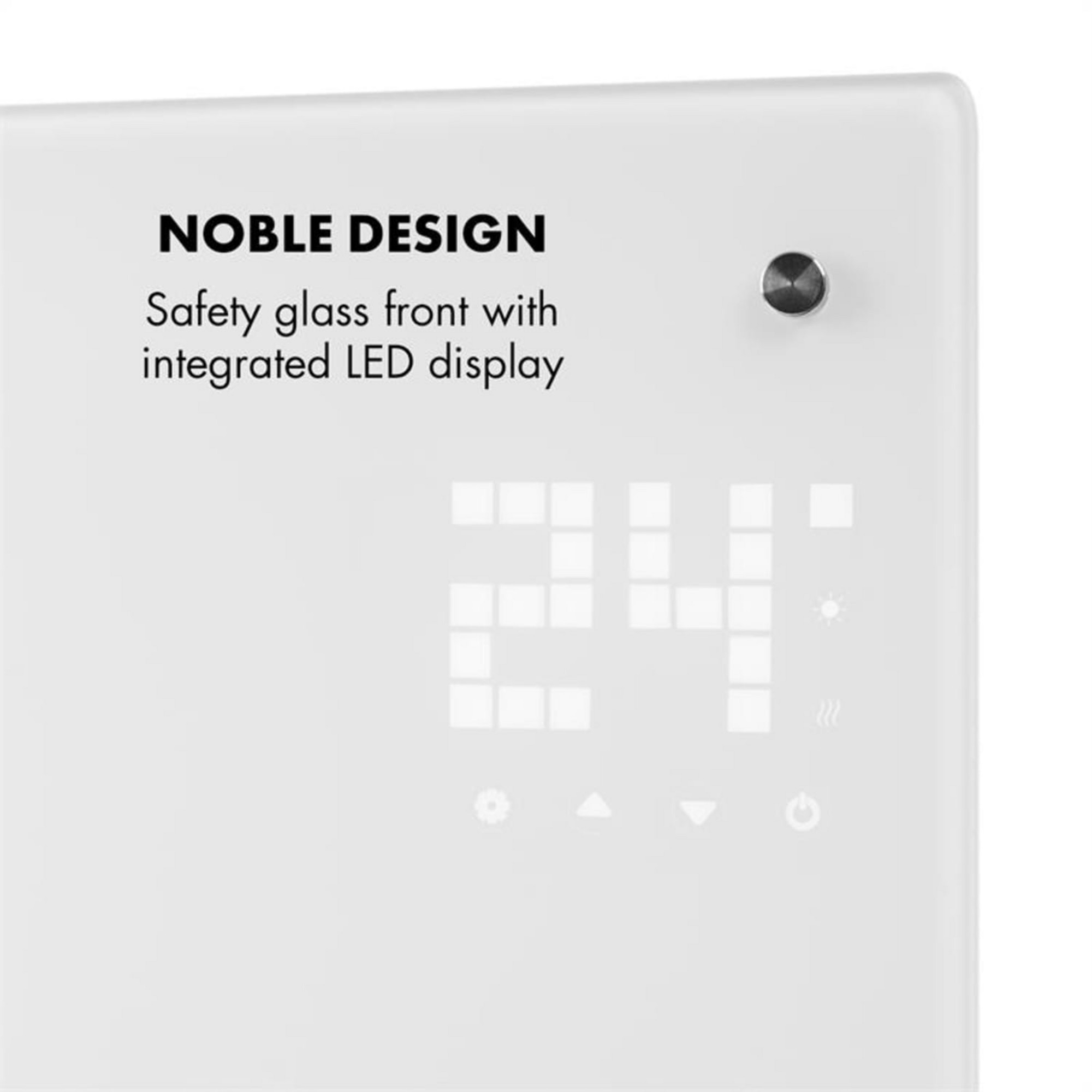 La estufa de convección curvada Bornholm de Klarstein distribuye un agradable aire caliente en habitaciones de hasta 40 m 2 . Con dos ajustes de calor, el calentador Klarstein de 2000 W calienta las habitaciones de hasta 45 ° C. Puede ajustar perfectamente cualquier temperatura deseada a través del termostato. El modo ECO reduce el consumo de energía al mínimo de forma respetuosa con el medio ambiente y ahorrando dinero, y gracias a la función de temporizador puede programar perfectamente el funcionamiento del calefactor. Además, el panel de cristal convexo del Bornholm Curvado de Klarstein es resistente a las salpicaduras, por lo que también podrá colocarlo en estancias húmedas. La forma curvada confiere al Bornholm Curvado Smart un aspecto especialmente elegante y, al mismo tiempo, garantiza una mejor distribución del calor en la habitación.