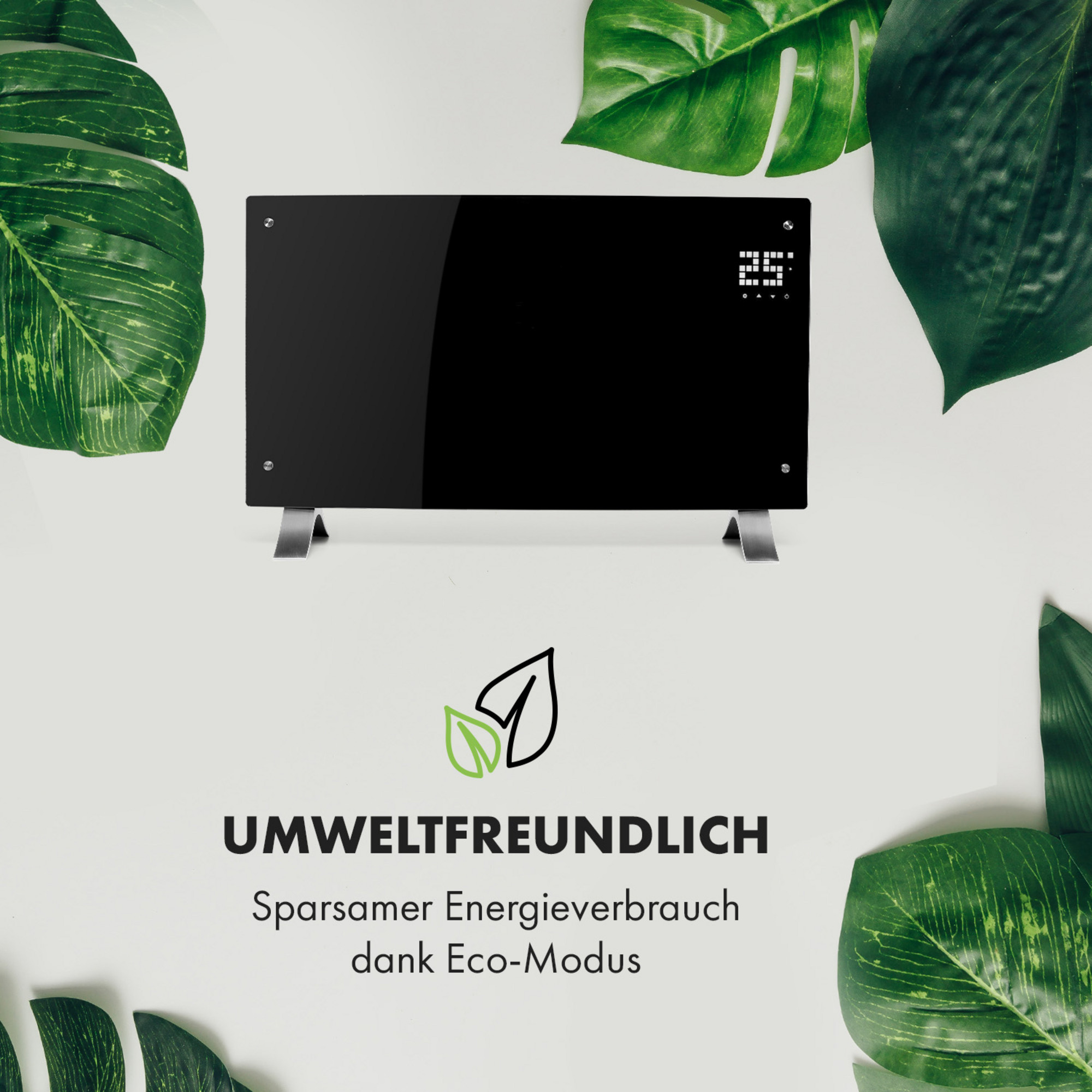 Mediante sus dos niveles de potencia, el convector de Klarstein de 2000 W calienta estancias hasta los 45 °C. Además, un termostato ayuda a mantener la temperatura deseada exacta. El modo ECO reduce el consumo energético al mínimo, lo que cuida tanto el medio ambiente como el bolsillo. El temporizador enciende y apaga el convector en el minuto exacto en que se haya programado. El panel de cristal del Bornholm Single Smart de Klarstein está protegido contra las salpicaduras de agua y puede, por consiguiente, instalarse en habitaciones con humedad. La forma curvada del Bornholm Curved Smart le proporciona un aspecto muy elegante y, al mismo tiempo, asegura una mejor distribución del aire caliente.