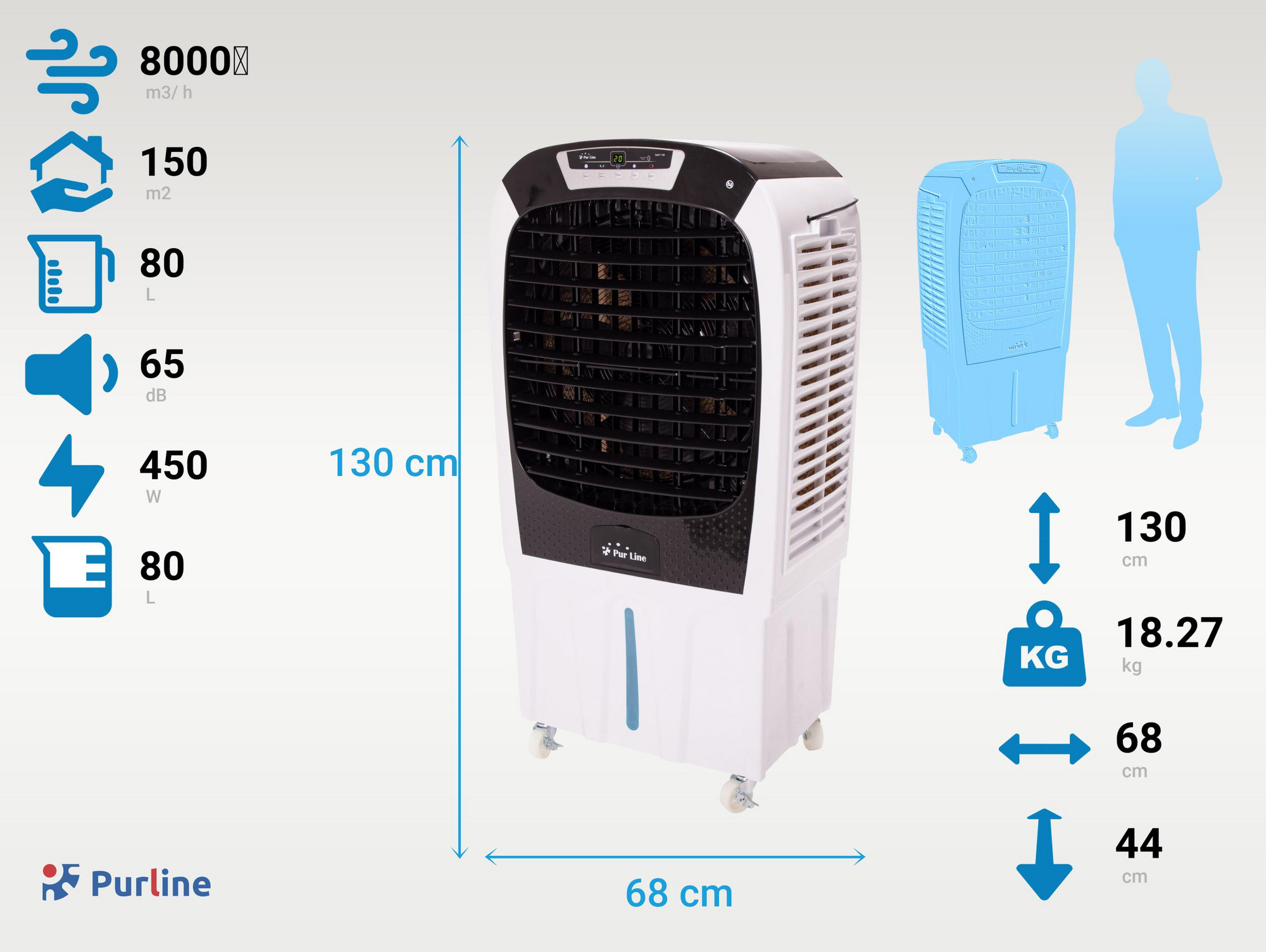 ¿Alguna vez has pensado en un sistema de climatización para tu hogar accesible, sencillo y cómodo? Este evaporativo de Purline es la solución para sobrevivir al calor, pues funciona gracias a una tecnología de enfriamiento avanzada y silenciosa que toma agua de su depósito (80L) y gracias a su triple panel evaporativo de celulosa la enfría y la expulsa, refrescando el ambiente rápidamente sin compresores ni refrigerantes químicos, totalmente ecológico y bueno para tu salud.