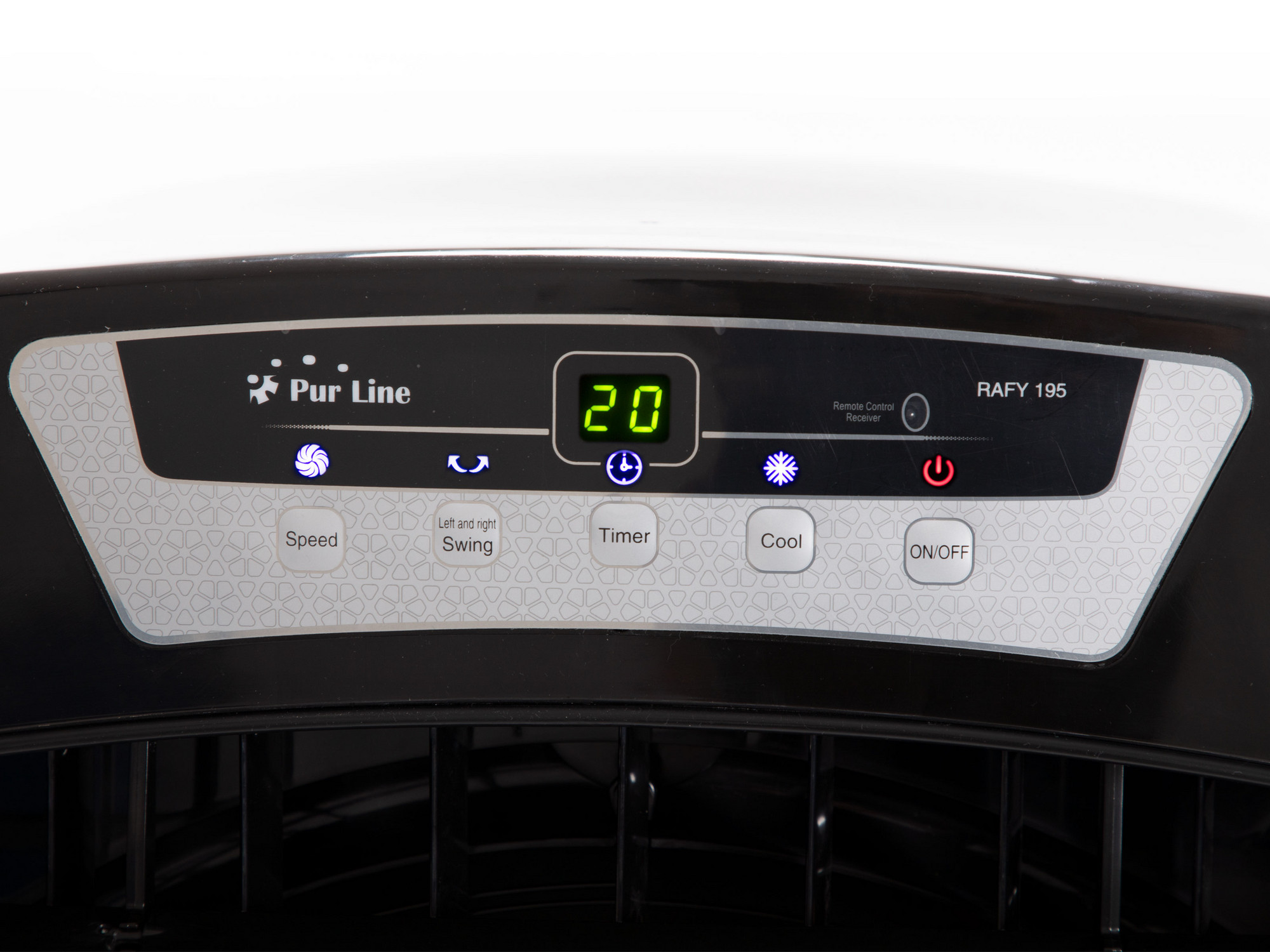 El RAFY 195 cuenta con un panel LED de control digital con 3 velocidades, temporizador y oscilación automática para mejorar la distribución del aire y ofrecer una experiencia completamente personalizada, además tiene una doble función de humidificación y purificación del aire, todo ello por un consumo máximo de 450W, diez veces inferior al de cualquier aire acondicionado portátil. Entre sus extras encontrarás la posibilidad de control de remoto a través de mando a distancia y rejilla motorizada.