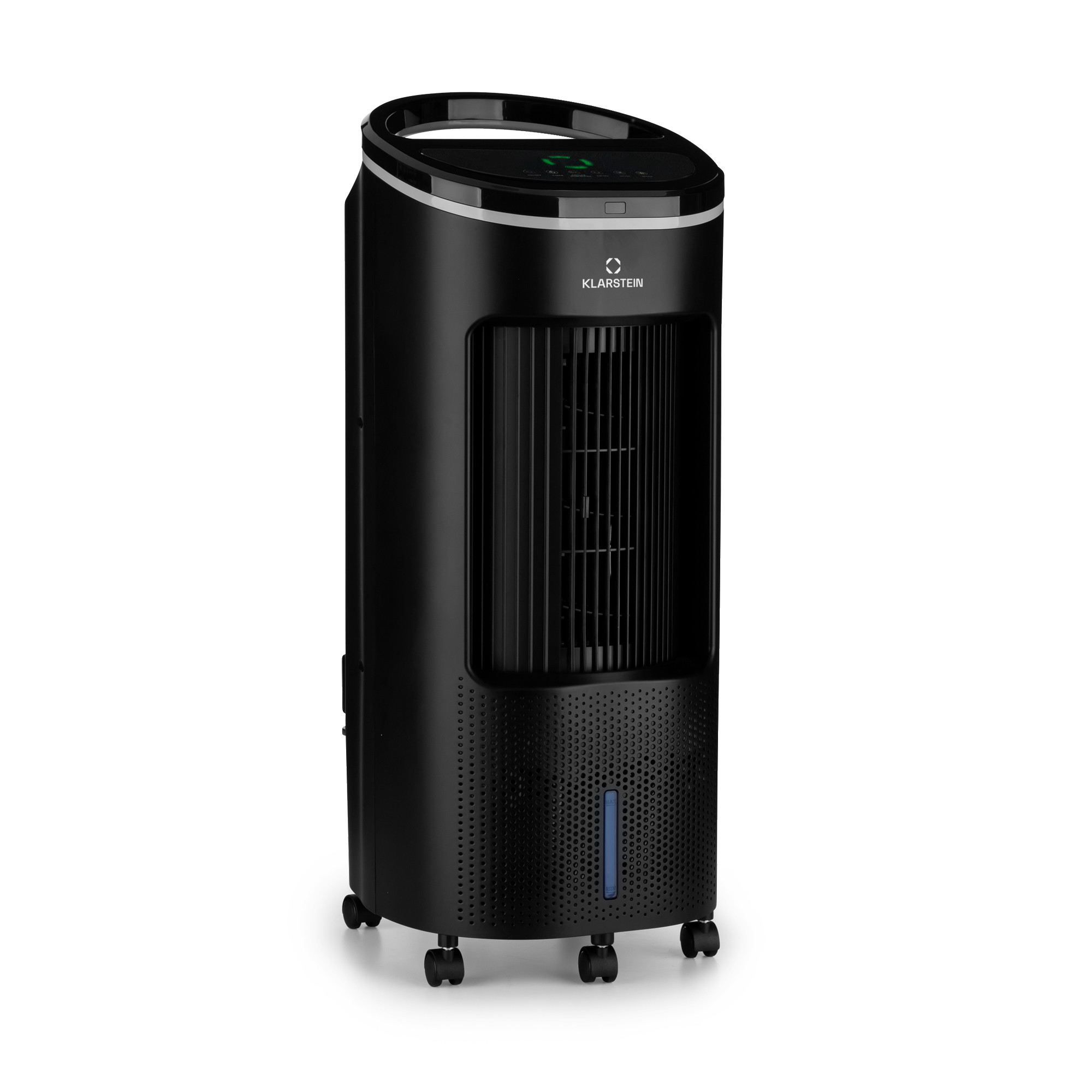 Especialmente inteligente: puedes controlar el Ice Wind Plus Smart desde cualquier lugar con la app de Klarstein a través de tu smartphone o tablet utilizando el WiFi de tu casa. Cuatro intensidades de viento diferentes y tres modos de funcionamiento proporcionan un refresco puntual como un ventilador de. La oscilación conmutable hace llegar el aire fresco a más de una persona mediante la oscilación izquierda-derecha de las lamas. Si además se utiliza el climatizador de aire , la refrigeración está a la orden del día para cualquier actividad. Dos paquetes de refrigeración reemplazables para el tanque de agua pueden mejorar aún más este efecto. El ionizador integrado libera el aire de olores y suciedad. El control se puede realizar además a través del panel de control táctil o cómodamente con el mando a distancia.