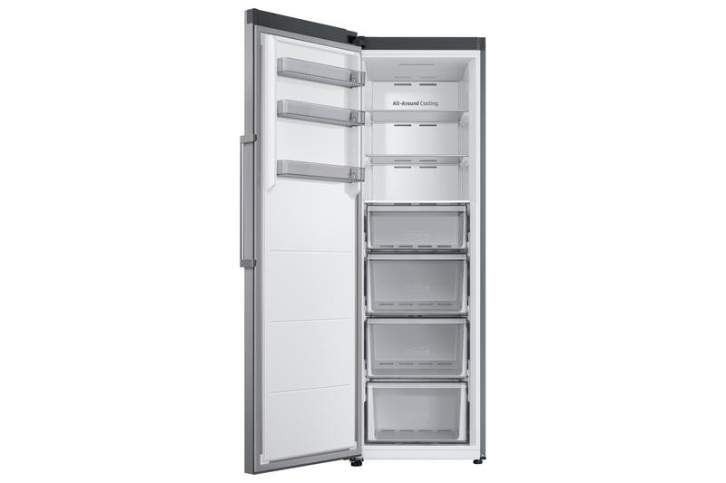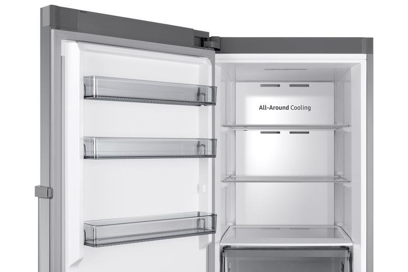 Con el congelador vertical RZ32C7BEES9/EF color inox, tus alimentos se enfriarán correctamente. La tecnología All Around Cooling consigue que la temperatura se mantenga constante en cada balda optimizando la circulación del aire lo que previene la formación de hielo. ¡Sí!¡Ya no malgastarás tu tiempo y energía descongelando!