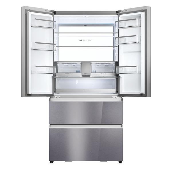 Frigorífico Multidoor de 4 puertas y 703 litros de capacidad total distribuidos en 449 litros de frigorífico y 254 litros de congelador es una de las opciones de mayor capacidad disponibles en el mercado doméstico, perfecto para familias numerosas o grandes consumidores que necesitan espacio para almacenar grandes volúmenes de alimentos con total comodidad.