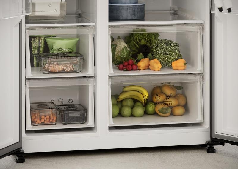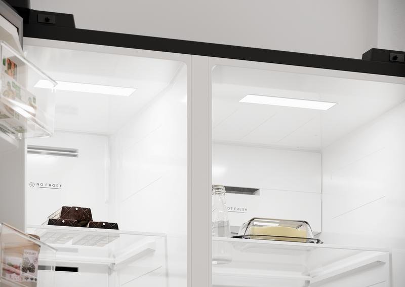 Gestiona la temperatura con total precisión mediante las pantallas digitales integradas, que muestran en tiempo real los grados del frigorífico y del congelador. El panel de control táctil te permite ajustar modos, activar la función de congelación rápida para enfriar grandes cargas en minutos y adaptar cada zona a las necesidades específicas de carnes, lácteos, verduras o bebidas.