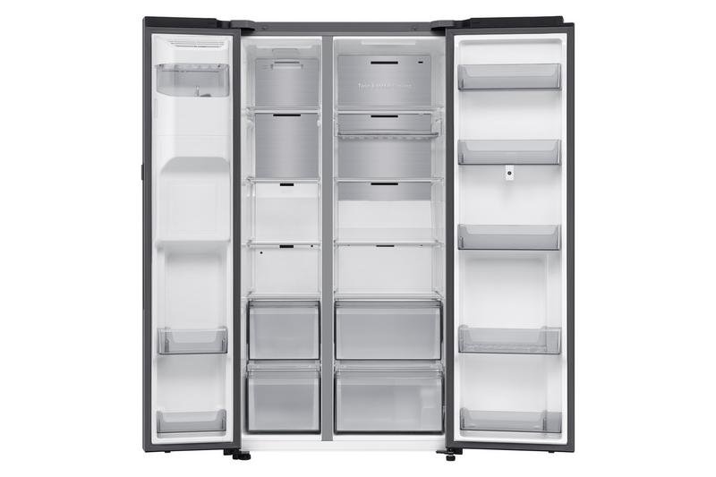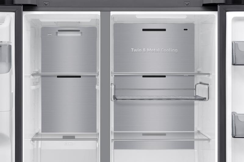 Frigorífico americano – Samsung Family Hub Bespoke AI RS90F66BETEF, Twin Cooling, 178.4 cm, 614 l, Dispensador agua y hielo, Balda botellero, Inox