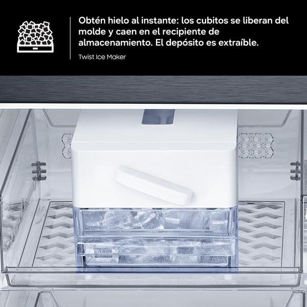 Ten hielo al instante con un simple giro de muñeca. Podrás quitar este depósito si necesitas más espacio en el congelador.