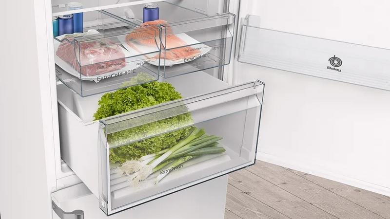 Los dos cajones ExtraCold mantienen una temperatura cercana a los 0ºC, ligeramente inferior a la del resto del frigorífico, e ideal para garantizar el máximo frío sin llegar a la congelación. Están diseñados para conservar productos delicados, como carne y pescado, manteniéndolos frescos más tiempo y sin que se mezclen olores o sabores. También permiten enfriar con rapidez hasta 12 latas de bebidas.