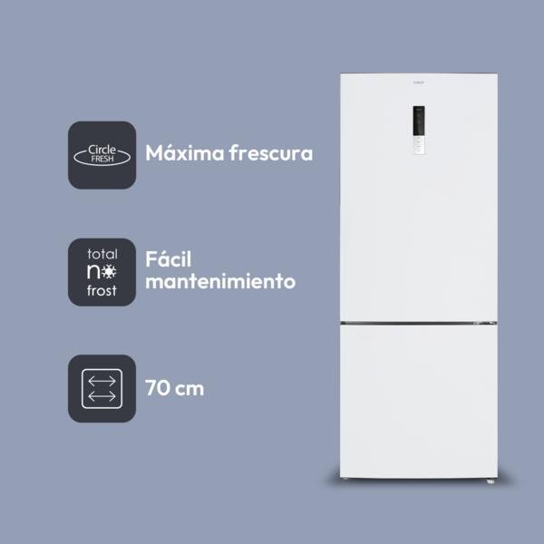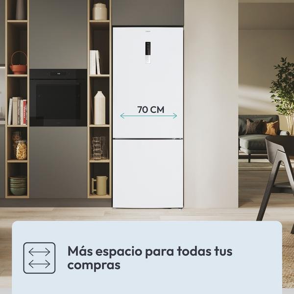 Frigorífico combi – Candy CCG5T718EW1, No Frost, 185.5 cm, Ancho especial 70 cm, 442 l, Tecnología Circle Fresh, Blanco