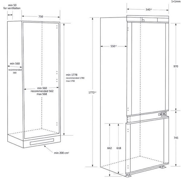 | Tipo de dispositivo | Frigorífico combi integrable |