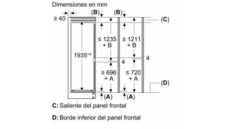 | Tipo de dispositivo | Frigorífico combi integrable |