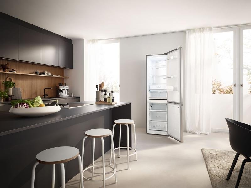 La capacidad de la combinación de frigorífico y congelador KOENIC KFK 611 A NF IN es de 256 litros en el compartimento frigorífico y 122 litros en el congelador. Por tanto, el frigorífico ofrece mucho espacio de almacenamiento para tus alimentos frescos y congelados, con un diseño atemporal que encaja en cualquier ambiente de cocina. El aparato es independiente, por lo que puede colocarse en cualquier sitio. Tiene una pantalla integrada en la puerta exterior que muestra la temperatura actual tanto del compartimento frigorífico como del congelador. También puedes ajustar otras funciones del frigorífico a través de la pantalla. Con un volumen de solo 29 decibelios, el aparato es muy silencioso y no te molestará durante las tareas cotidianas.