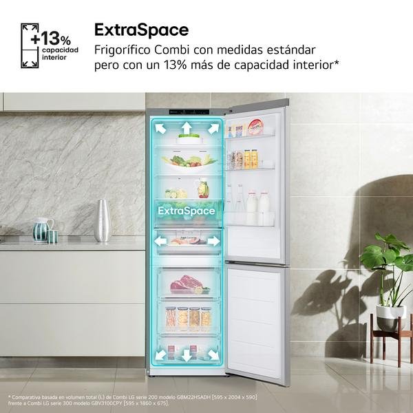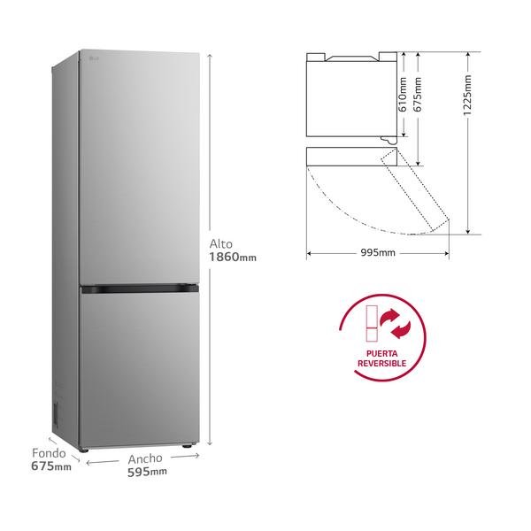 Frigorífico combi – LG GBV3100CPY, No Frost, 186 cm, 344 L, DoorCooling+™, FRESHBalancer™, Inox antihuellas