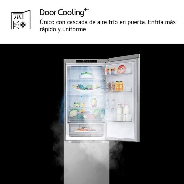 DoorCooling™ es una cascada de aire frío en la parte superior frontal del frigorífico que permite enfriar más rápido las bebidas y alimentos y reduce la diferencia de temperatura entre el interior y la puerta del frigorífico para conseguir un enfriamiento más uniforme.
