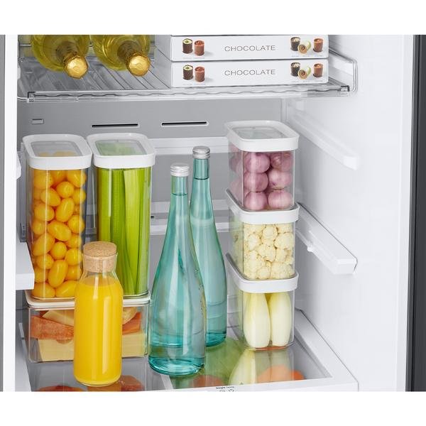 Más espacio para almacenar tus alimentos con un diseño optimizado*. Samsung ha utilizado la tecnología de aislamiento más avanzada y fina para reducir el grosor de las paredes internas de este frigorífico, sin modificar su exterior. Organízalo todo cómodamente y aprovecha cada rincón al máximo.