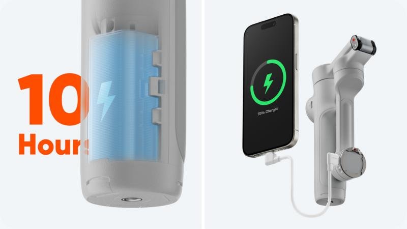 Lleva todo lo que necesitas en un solo dispositivo que funciona como trípode, selfie stick y power bank simultáneamente. El Flow 2 se pliega completamente para caber en tu bolsillo y ofrece hasta 10 horas de grabación continua, convirtiéndose en la solución perfecta para creadores de contenido que necesitan portabilidad sin sacrificar funcionalidad profesional.