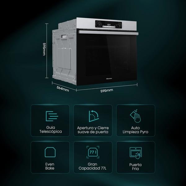Horno – Hisense BI64213E14PX, Multifunción, Pirolítico, 77 L, 59.5 cm, Modo Air Fry, A+, Inox