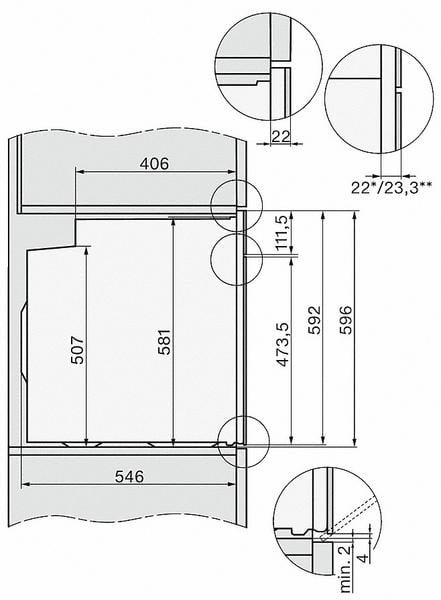 | 56 cm / 59.3 cm / 55 cm | Anchura mínima del hueco |