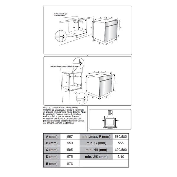 Dimensiones necesarias para el encastre: 600 x 600 x 590 mm