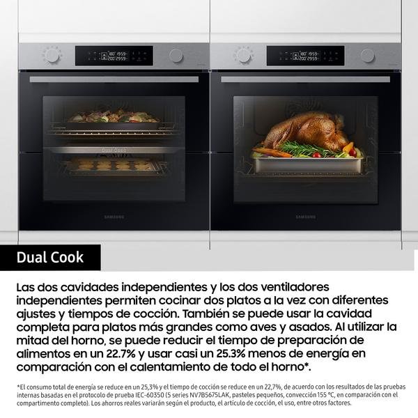 Horno – Samsung NV7B4530ZAS/U1 Dual Cook Flex, Multifunción, Pirolítico, 76l, 59.5 cm, WiFi, Puerta Flexible, Inox