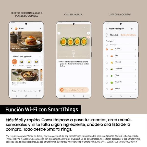 Más fácil y rápido. Consulta paso a paso tus recetas, crea menús semanales y, si te falta algún ingrediente, añádelo a la lista de la compra. Todo desde SmartThings.