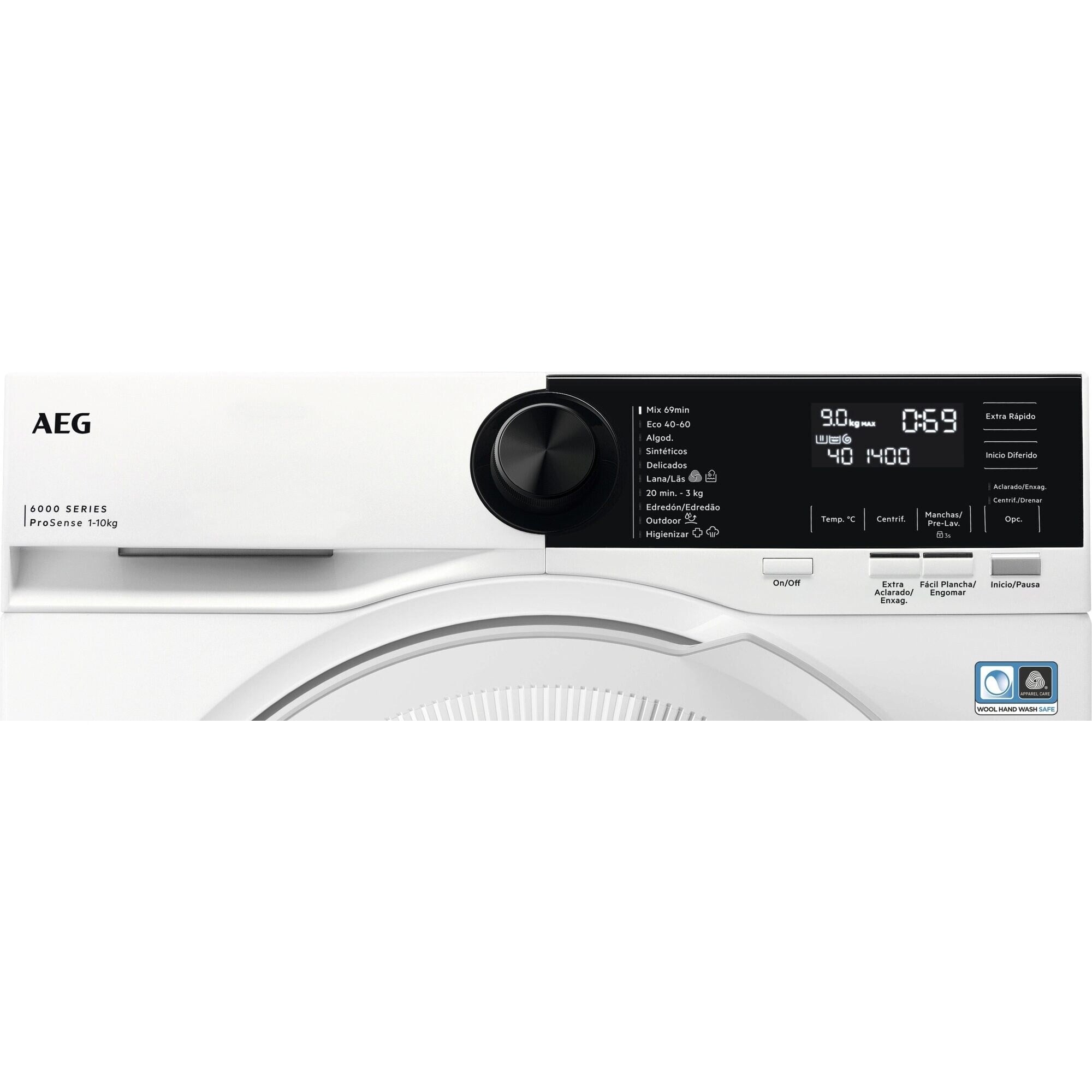 | Caract. especiales | Inicio diferido|Plancha fácil|Aclarado extra|On/Off|Opciones|Centrifugado|Manchas/Prelavado|Inicio/Pausa|Temperatura|Ahorro de tiempo |