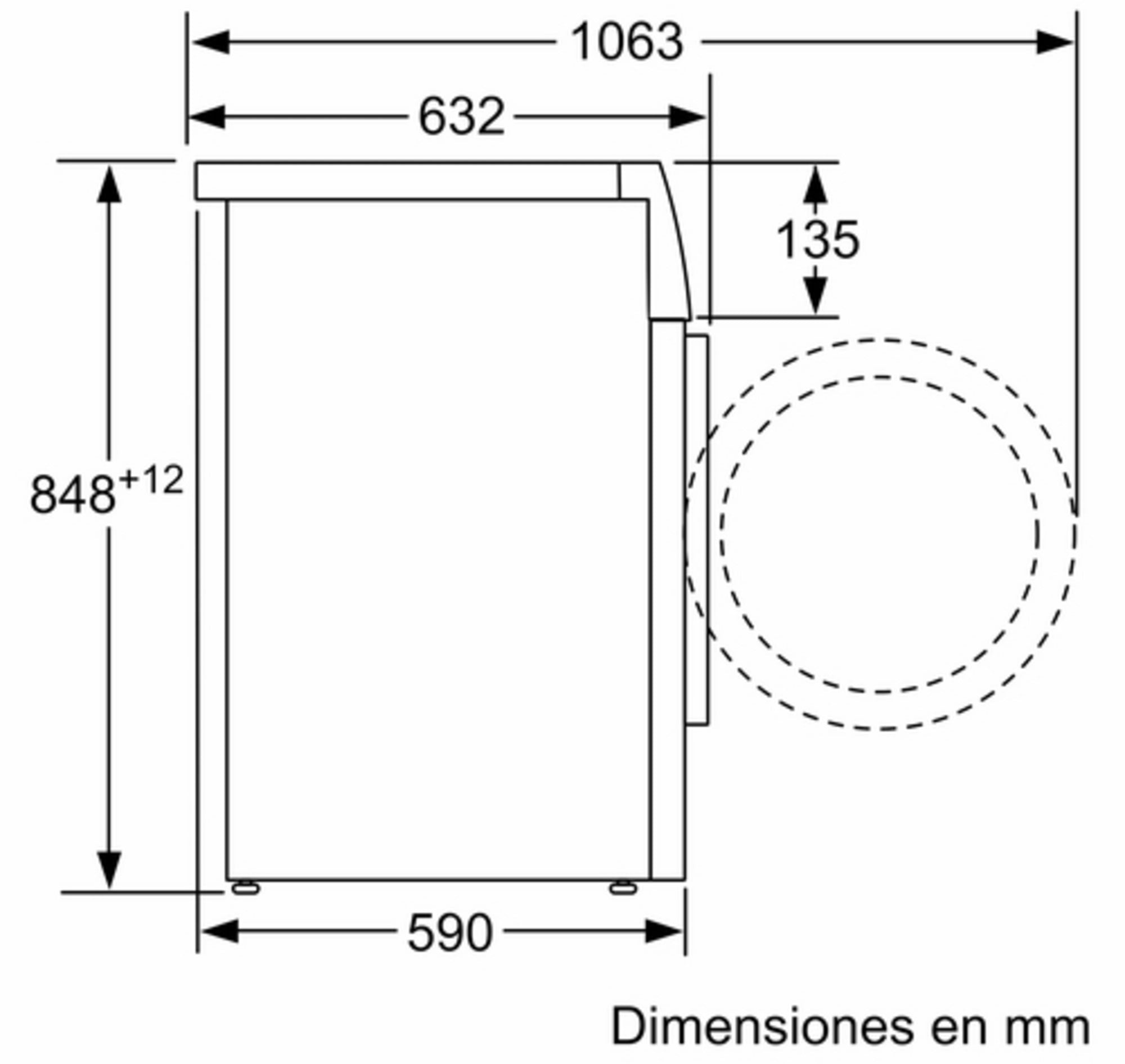 | Profundidad del producto con la puerta abierta (90 °) | 1049 mm |