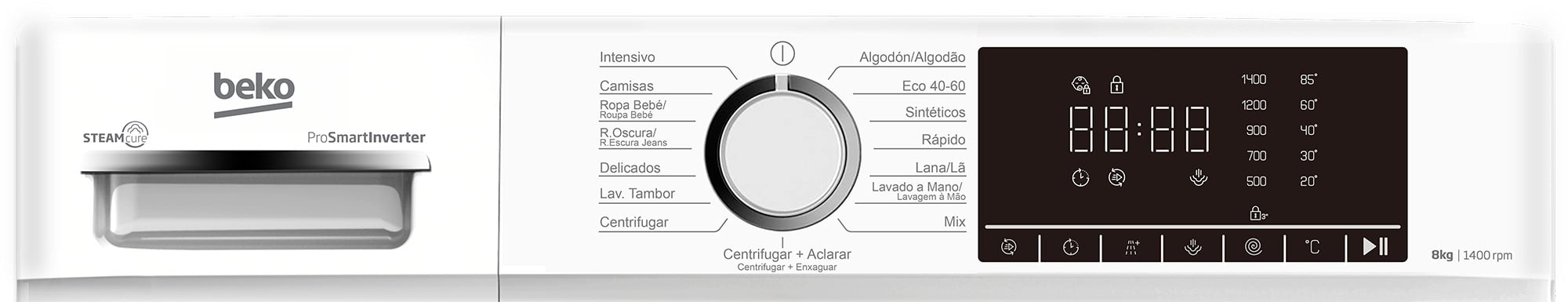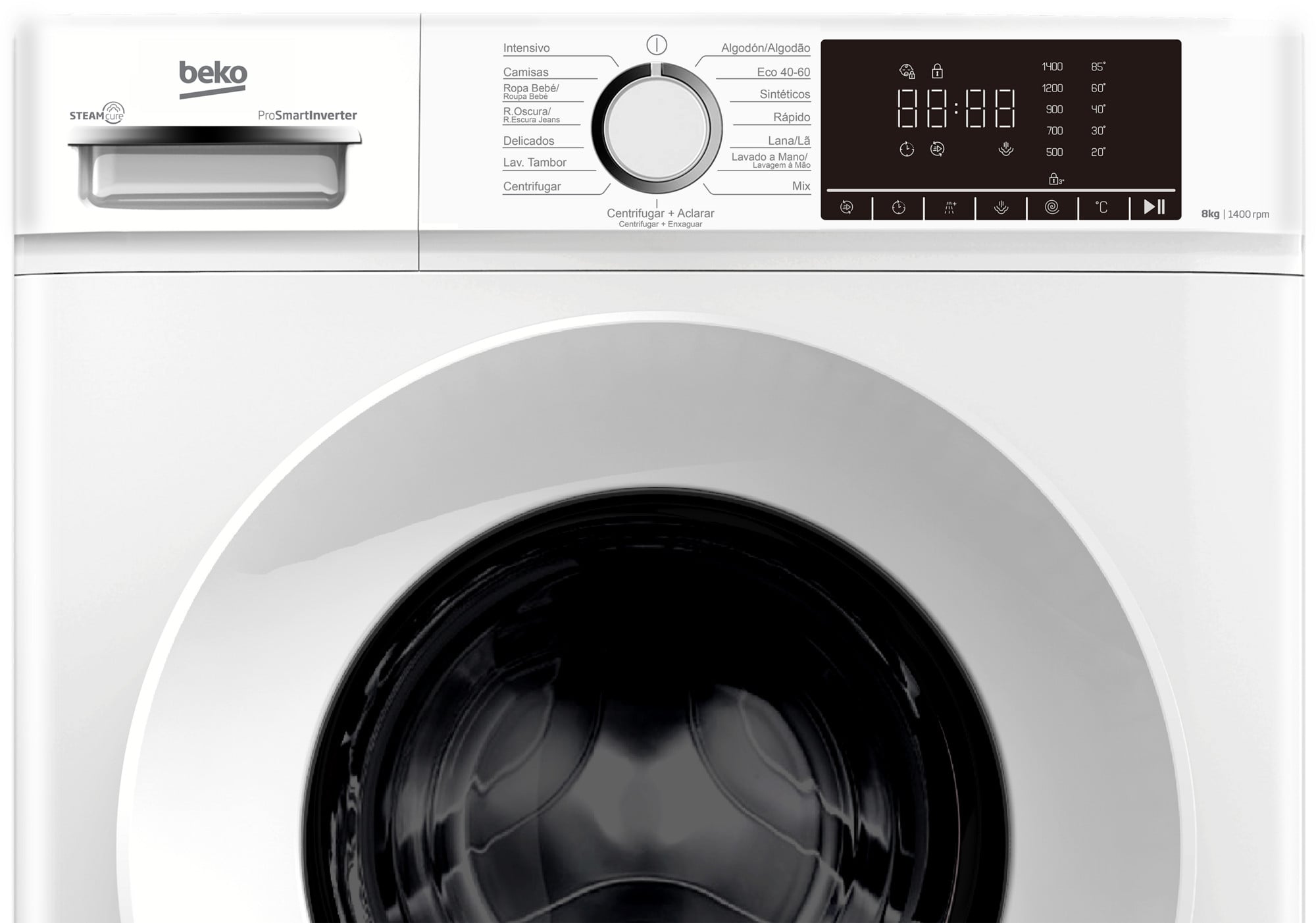 Lavadora carga frontal – BEKO B1XW752WSPT, 7 kg, 1200 Rpm, Motor ProSmart Inverter, 15 Programas, Blanco