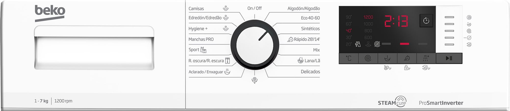 | Programas | Algodón, Eco 40-60, Sintéticos, Diario Express / Express súper corto 14 min, Mix, Lana / Lavado a mano, GentleCare™, Centrifugado + Vaciado, Aclarado, Ropa oscura / Jeans, Sport, StainExpert™ – Manchas Pro, Programa Hygiene+ con Vapor, Plumífero con función vapor, Camisas con vapor |