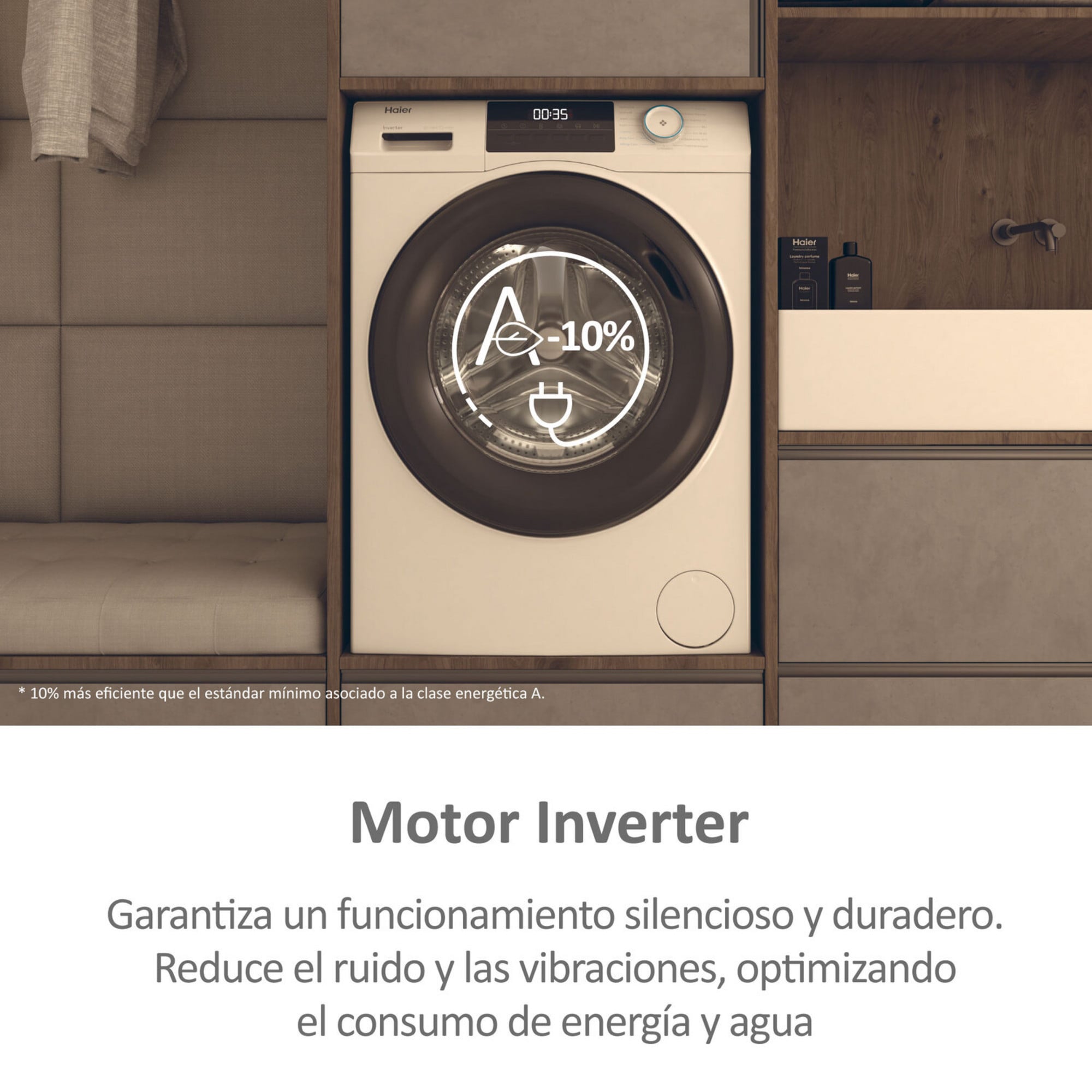 Disfruta de un lavado excepcionalmente potente y silencioso gracias al motor AI Power Inverter Drive que se adapta inteligentemente a las necesidades exactas de cada carga, optimizando el rendimiento, reduciendo el consumo energético y minimizando el nivel de ruido en cada ciclo. Al funcionar sin escobillas, este motor de ingeniería superior reduce el desgaste mecánico garantizando una mayor durabilidad del electrodoméstico, un funcionamiento más estable a 1400 rpm y una experiencia de lavado más cómoda y silenciosa con clase de ruido acústico A para hogares modernos que valoran la tranquilidad.