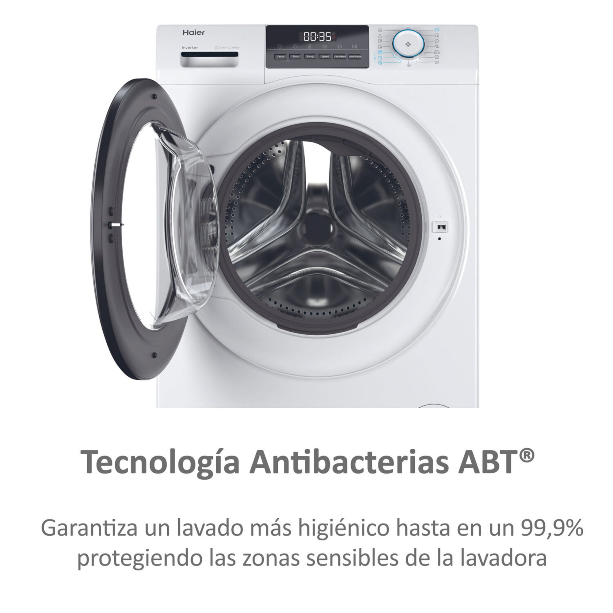 Protege la higiene de tu lavadora y tu ropa de forma continua con el exclusivo tratamiento Antibacterias ABT® de Haier, que actúa directamente sobre las zonas más vulnerables del electrodoméstico como la junta de la escotilla, previniendo con más de un 99% de efectividad la formación de moho, bacterias y gérmenes que generan olores desagradables y residuos no deseados en tus prendas. Con el ABT® activo las 24 horas, tu lavadora permanece higiénica ciclo tras ciclo garantizando que cada colada salga de un entorno limpio y protegido en todo momento.