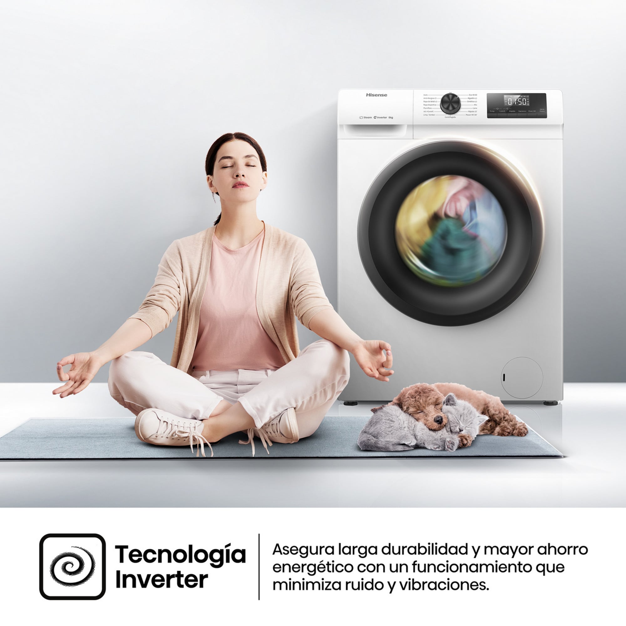 Lavadora carga frontal – Hisense WF1Q8041BW, 8 kg, 1400 Rpm, Función Vapor, Eficiencia A-20%, Blanco