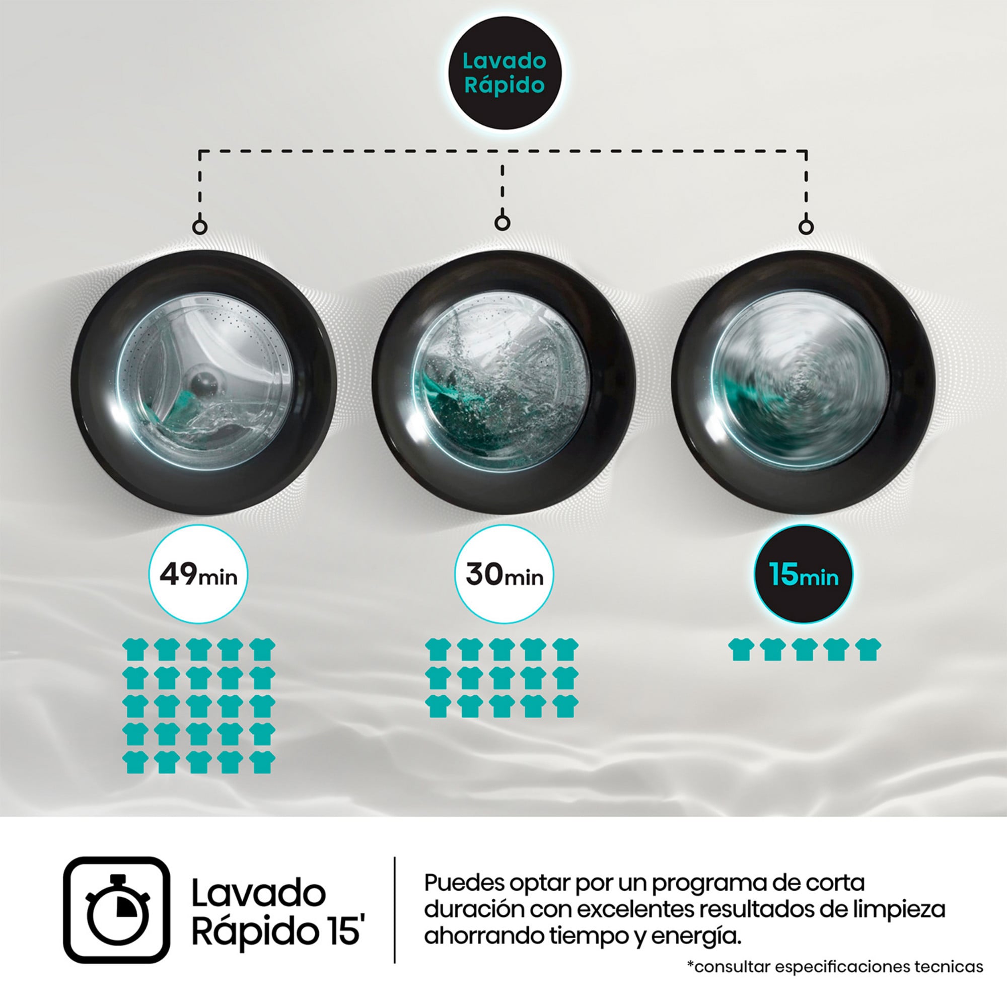 Puedes optar por un programa de 15 minutos con excelentes resultados de limpieza ahorrando tiempo y energía.