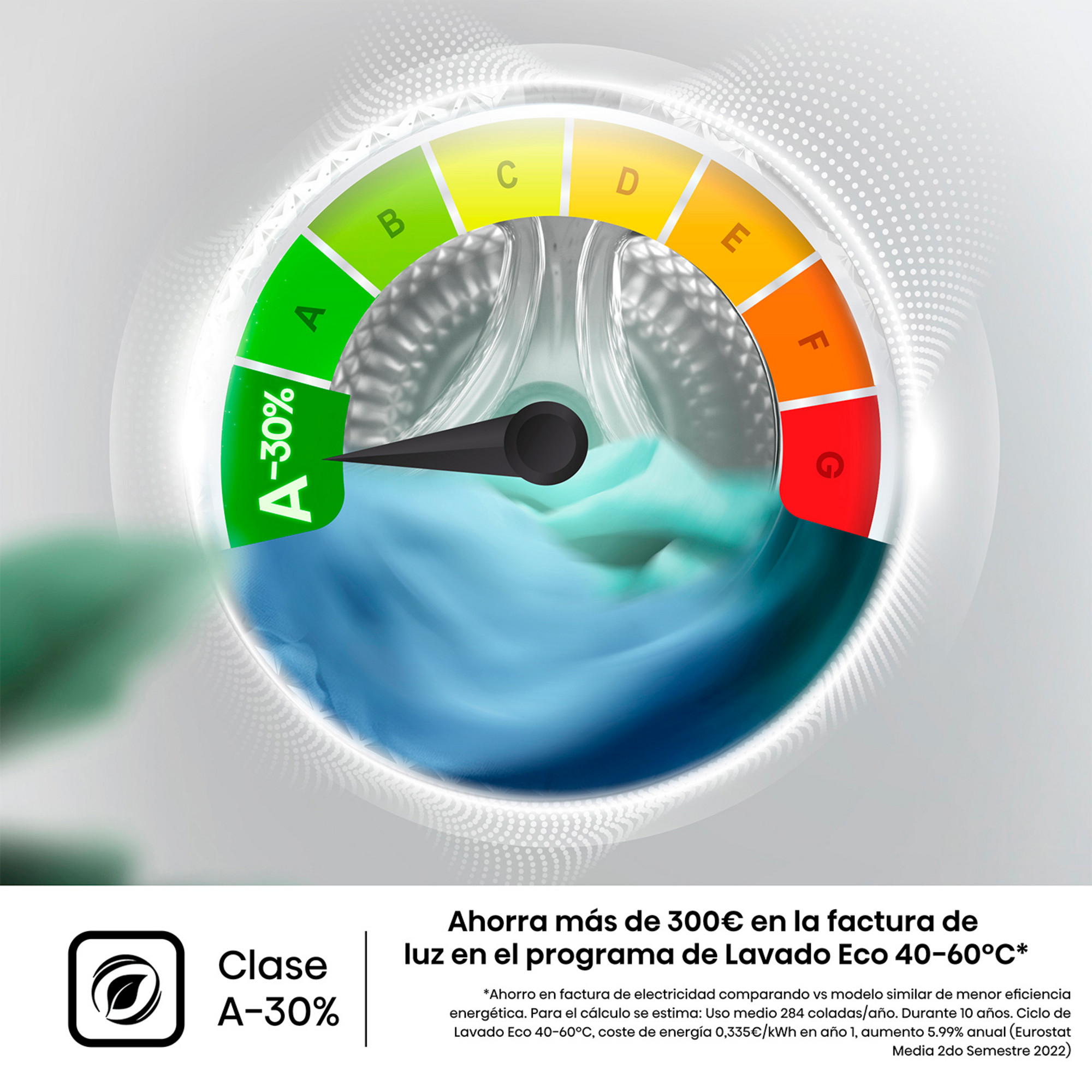 Máxima eficiencia energética de clase A. No solo te ayuda a ahorrar en el coste de electricidad, sino que también contribuye a un estilo de vida más sostenible al reducir tu impacto ambiental.