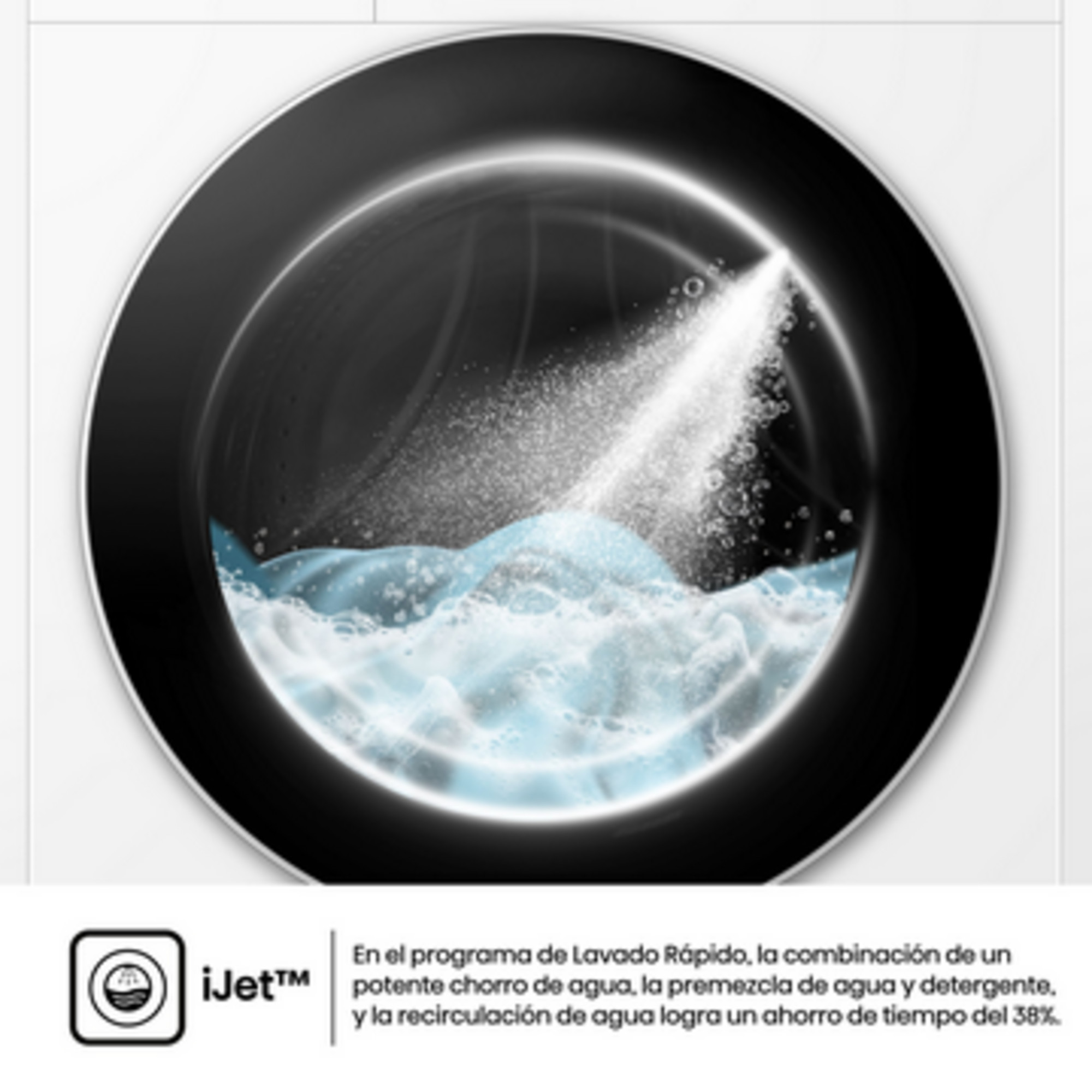 En el programa de Lavado Rápido, la combinación de un potente chorro de agua, la premezcla de agua y detergente, y la recirculación de agua logra un ahorro de tiempo del 38%.