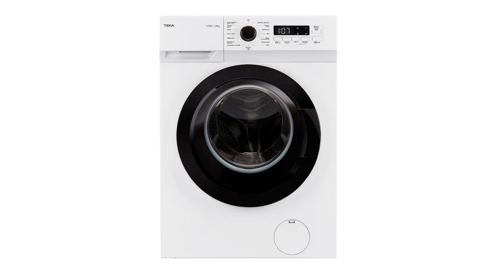Esta lavadora ofrece una capacidad máxima de 8 kg, perfecta para familias medianas que necesitan lavar grandes volúmenes de ropa sin complicaciones. Su diseño blanco armoniza con cualquier tipo de decoración, aportando un toque moderno y limpio a tu hogar.