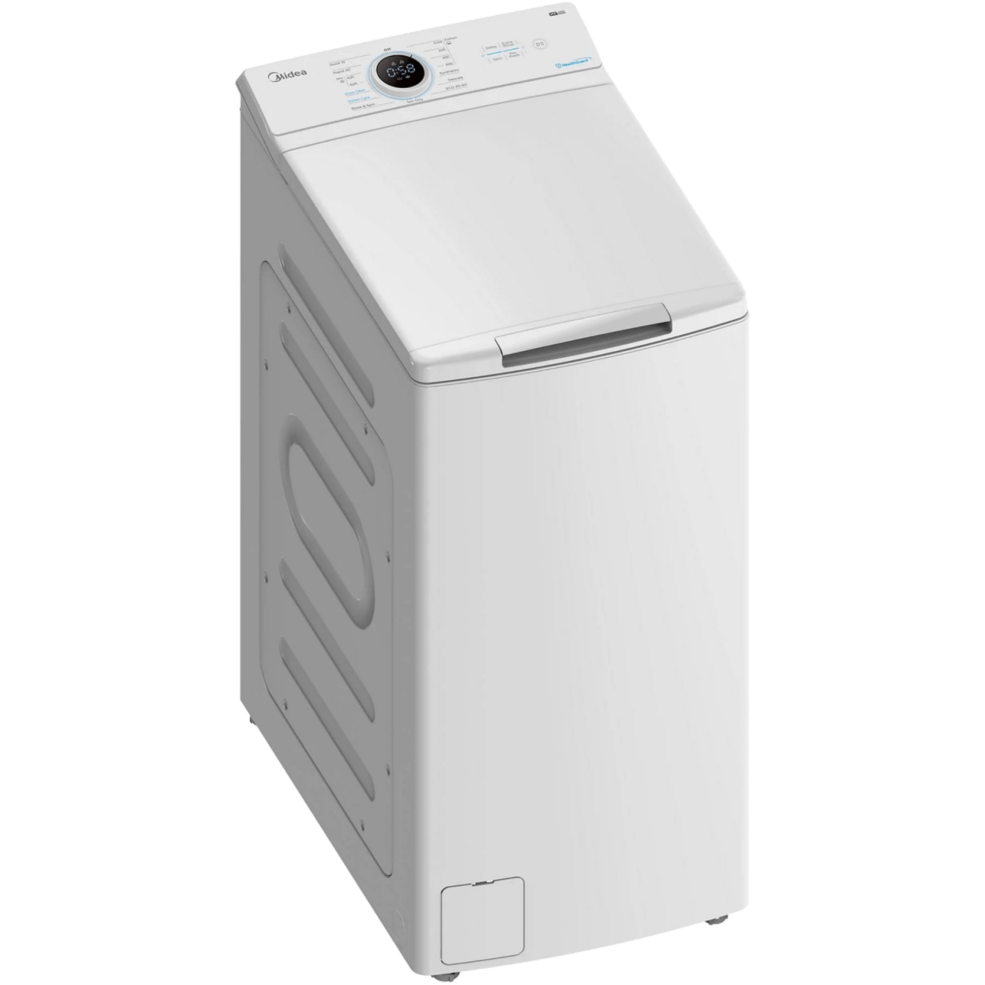 Lavadora carga superior – Midea MF100T80B/W-ES, 8 kg, 1300 rpm, 15 programas, Display, Blanco