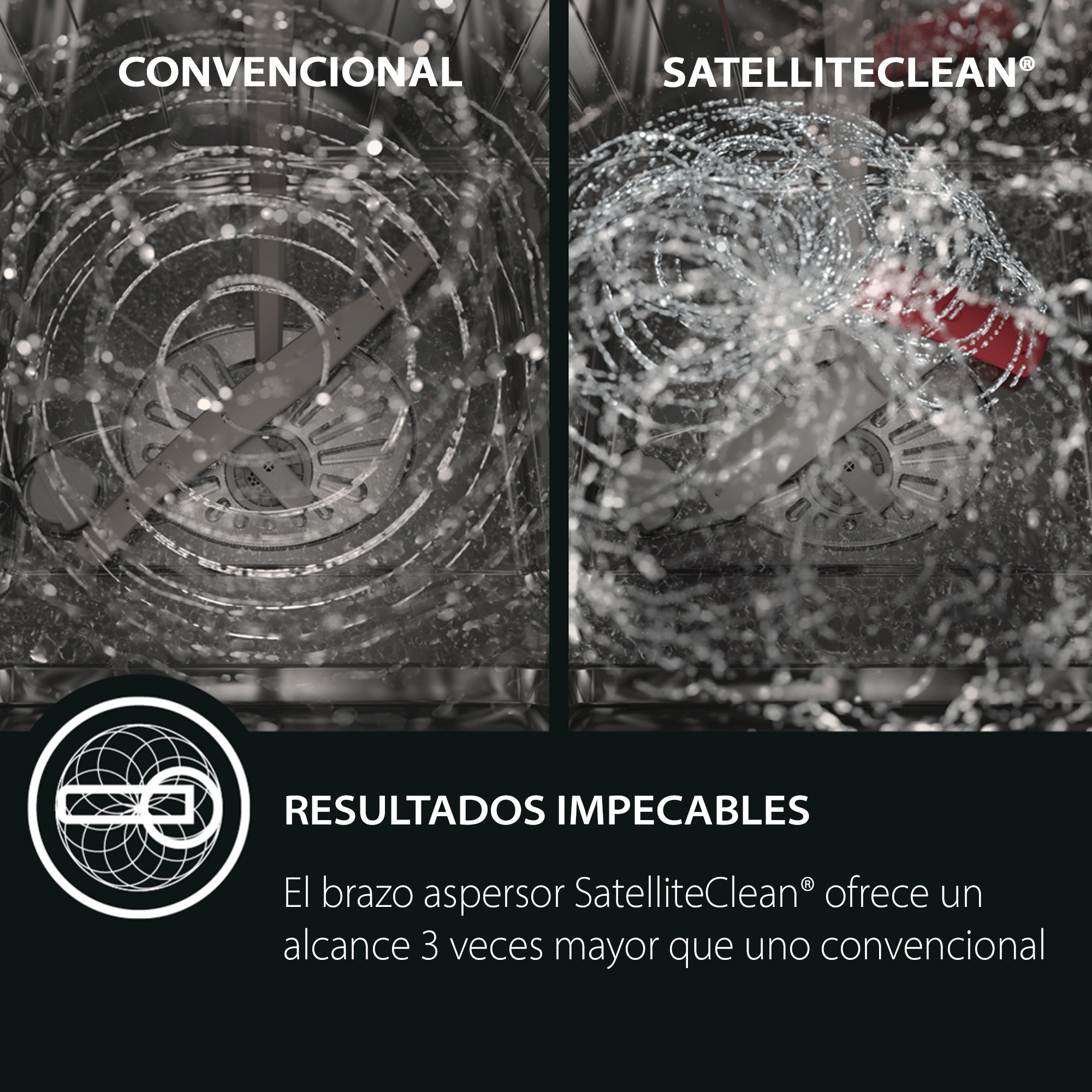 Brazo aspersor satélite, limpieza potente y minuciosa