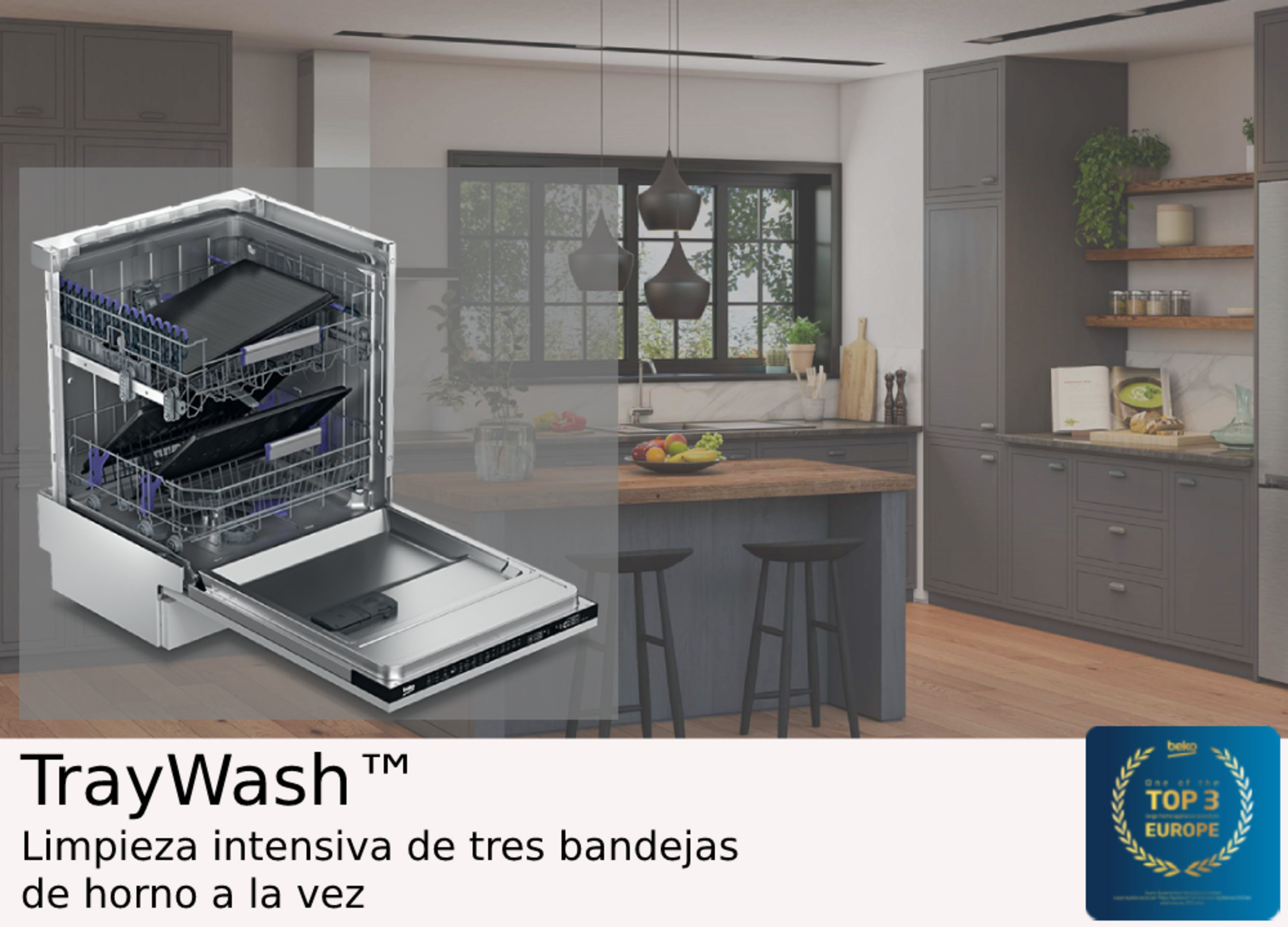 ¿No cocinas más en el horno porque te da cosa tener que lavar las bandejas después? Déjale el trabajo sucio a TrayWash™ y su potente programa de limpieza a alta presión con espacio para 3 bandejas. ¿Quién quiere madalenas…?
