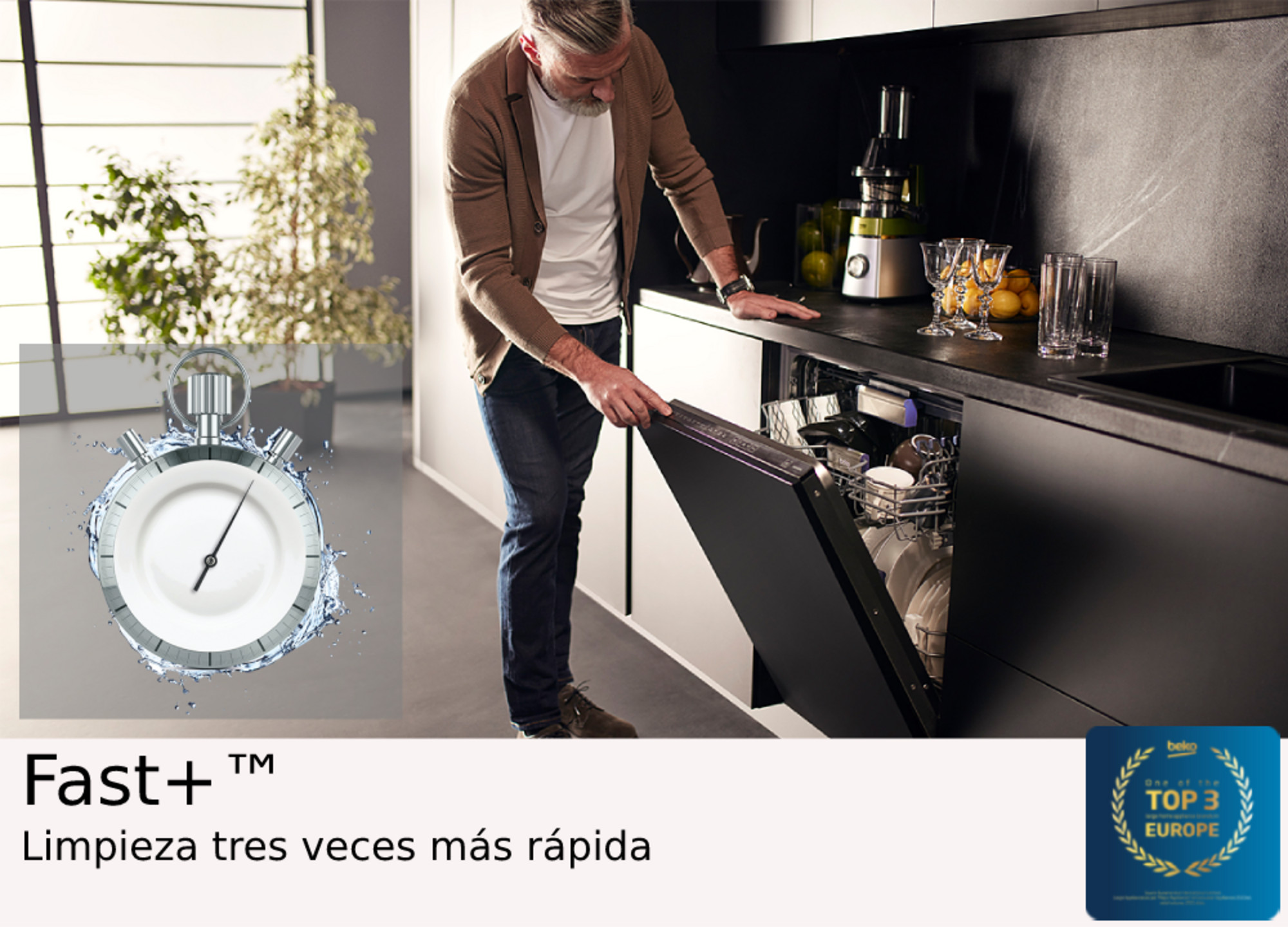 A veces no tienes tiempo para esperar a que acabe un ciclo de lavado completo. La función Fast+ acelera el ciclo de lavado hasta 3 veces* con un rendimiento óptimo para que puedas lavar y servir con poco tiempo. *Testado en laboratorios internos.
