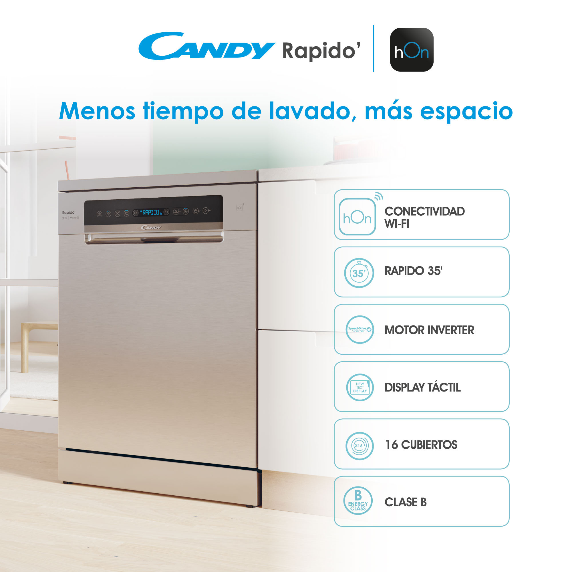 El ciclo Rápido 35′ permite lavar y secar una carga completa en solo 35 minutos, siendo el ciclo más rápido del mercado, ideal para el ritmo de vida moderno.