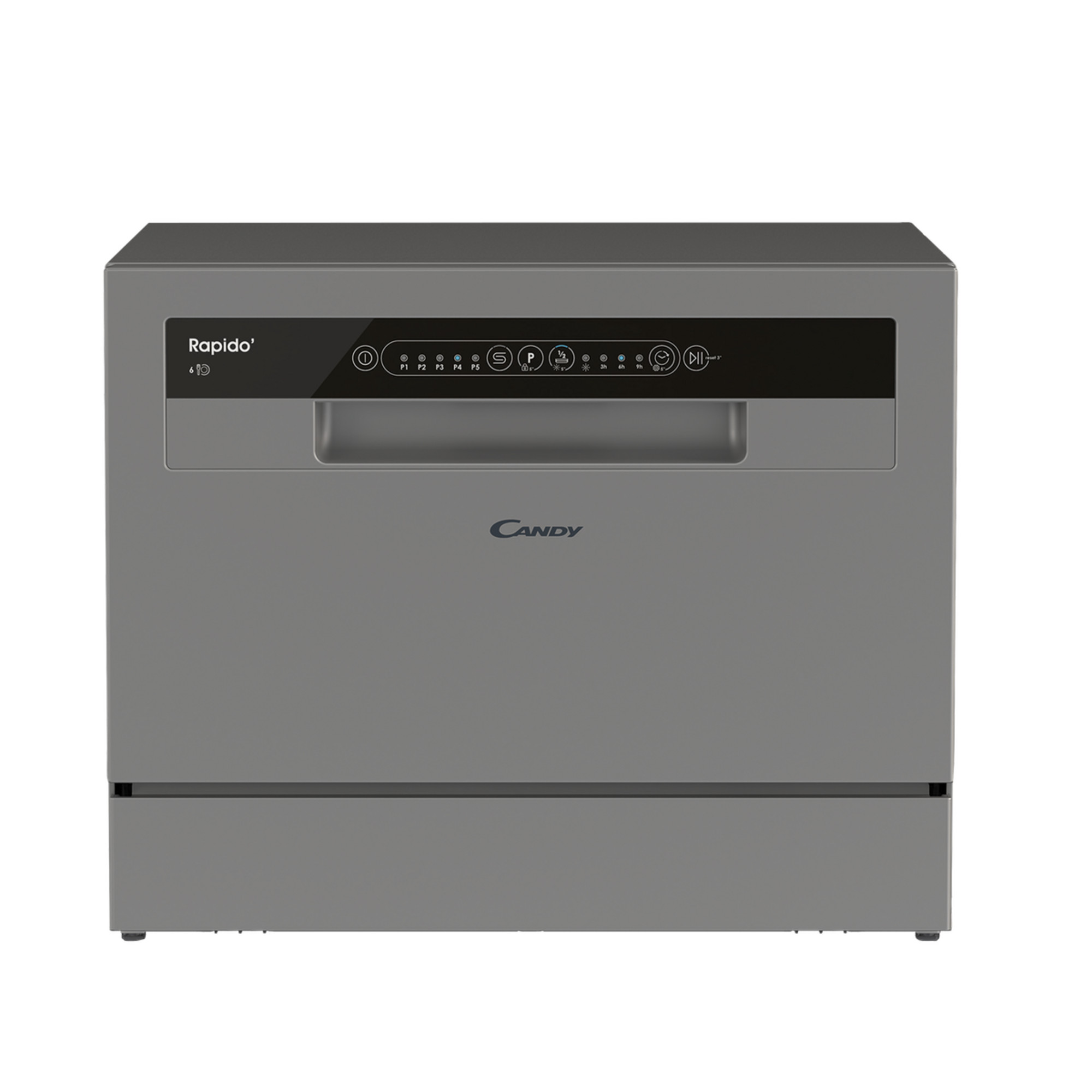 El lavavajillas compacto Candy Rapido’ CP 6E51LS, tiene una capacidad hasta 6 servicios, además de 5 programas a escoger entre el que mejor convenga. Por su tamaño, es adaptable a cocinas pequeñas porque tiene 45 cm de ancho.