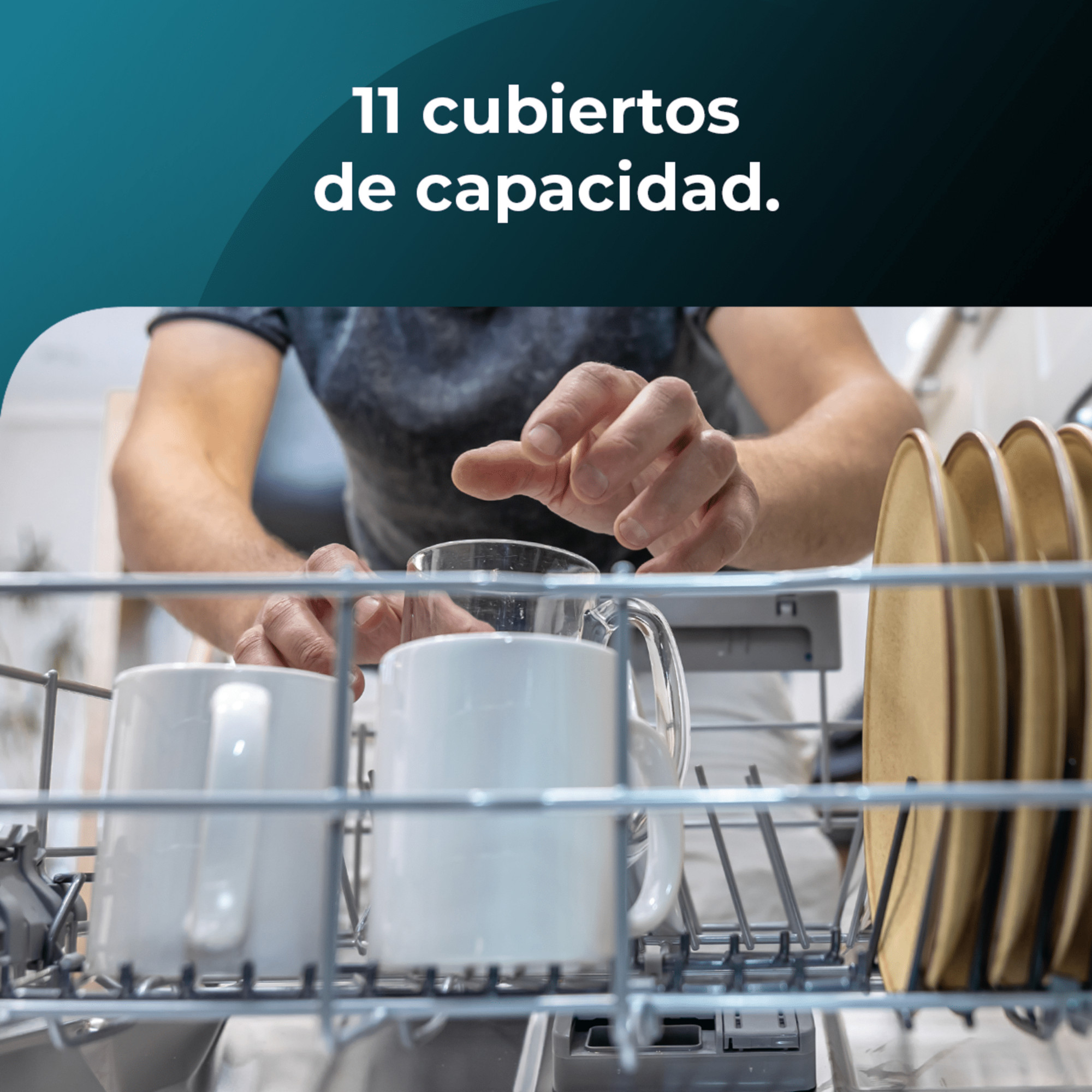 Gran capacidad de hasta 11 cubiertos