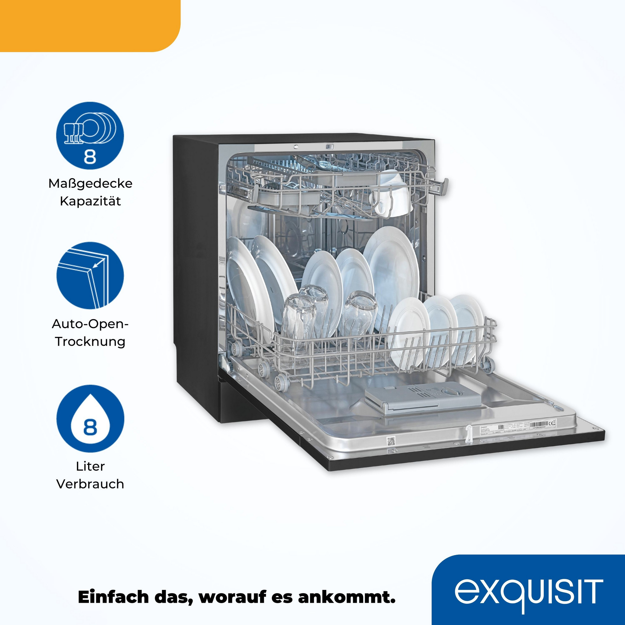Lavavajillas compacto con 8 servicios de capacidad. Libre instalación Dimensiones especiales que permiten varias opciones de instalación. Eficiencia energética clase D , dentro del rango A (máxima eficiencia) a G (menos eficiente). 7 programas de lavado : Intensivo, Power+, ECO, Cristal, Ligero (90 minutos), Corto (30 minutos) y Autolimpieza Programa corto de 30 minutos Inicio diferido 1-24 horas . Indicadores falta de Sal y Abrillantador Consumo de agua de 8,0 Litros por ciclo Botom de Pausa, para realizar ajustes en cualquier momento El inicio diferido , te permitirá de manera sencilla utilizarlo por la noche, cuando la Tarifa de Luz es más barata. ¡ENTREGA EXQUISIT-A INCLUIDA! Entrega con cita previa. Y 36 meses de Garantía , con Servicio Técnico en toda España.
