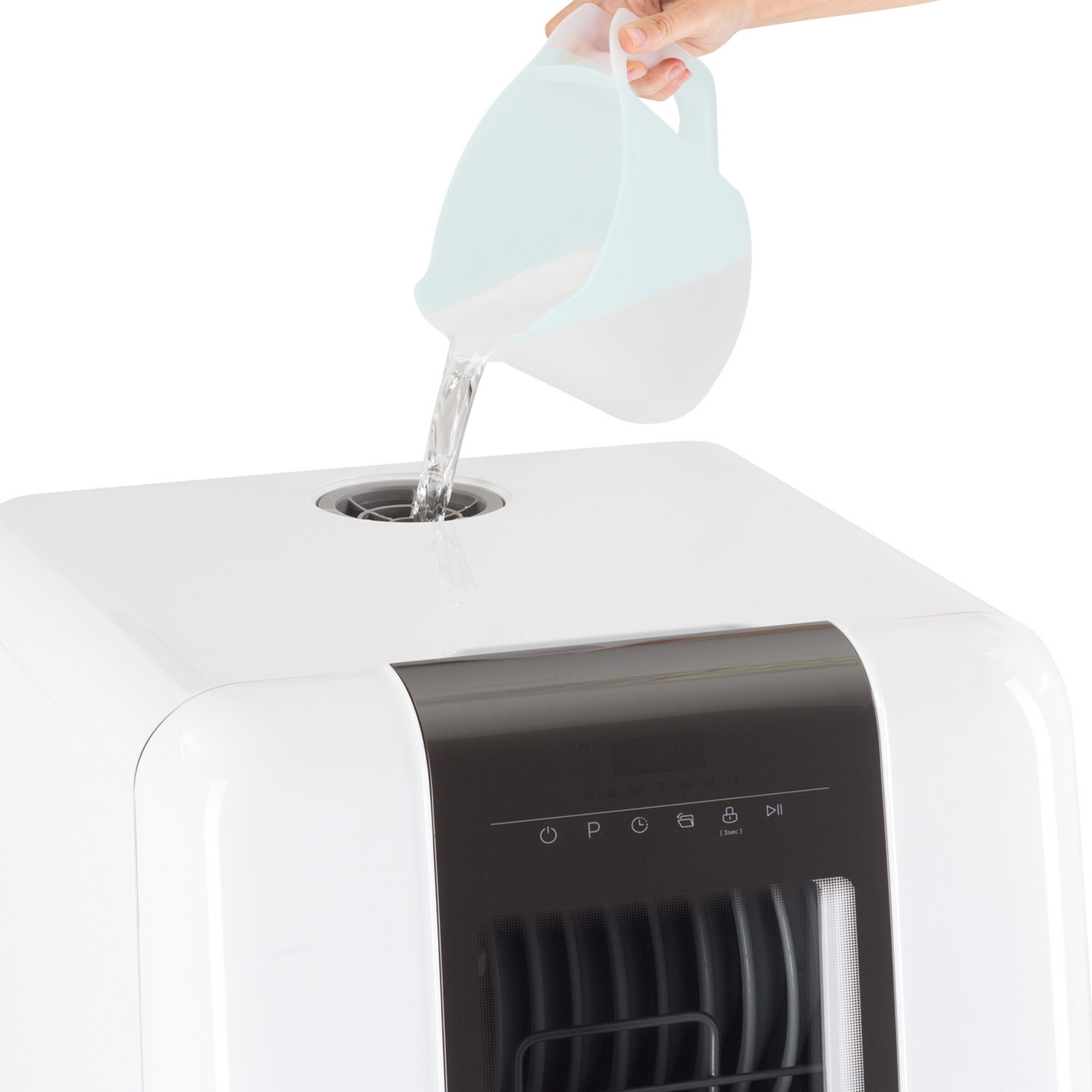 Transforma la tediosa tarea de lavar los platos con el Klarstein Melville 3 , un lavavajillas independiente y portátil, perfecto para hogares pequeños o espacios reducidos. Su elegante diseño con frontal de cristal no solo aporta un toque de lujo a tu cocina, sino que además te permite ver el interior. Olvídate de instalaciones complicadas; este mini lavavajillas está listo para usar en un abrir y cerrar de ojos gracias a su tanque incorporado , sin necesidad de herramientas ni instalaciones adicionales. Disfruta de 7 programas de lavado diseñados para ofrecerte platos relucientes mientras ahorras tiempo y energía. El Klarstein Melville 3 no es solo un electrodoméstico, es el compañero perfecto para tu cocina.