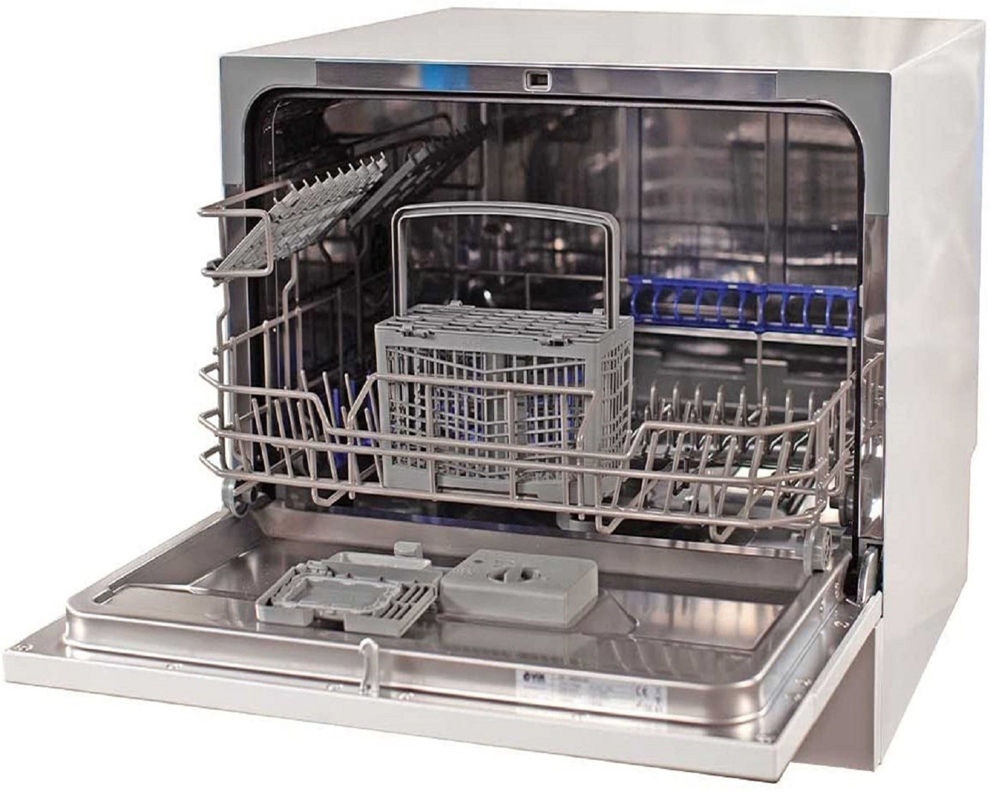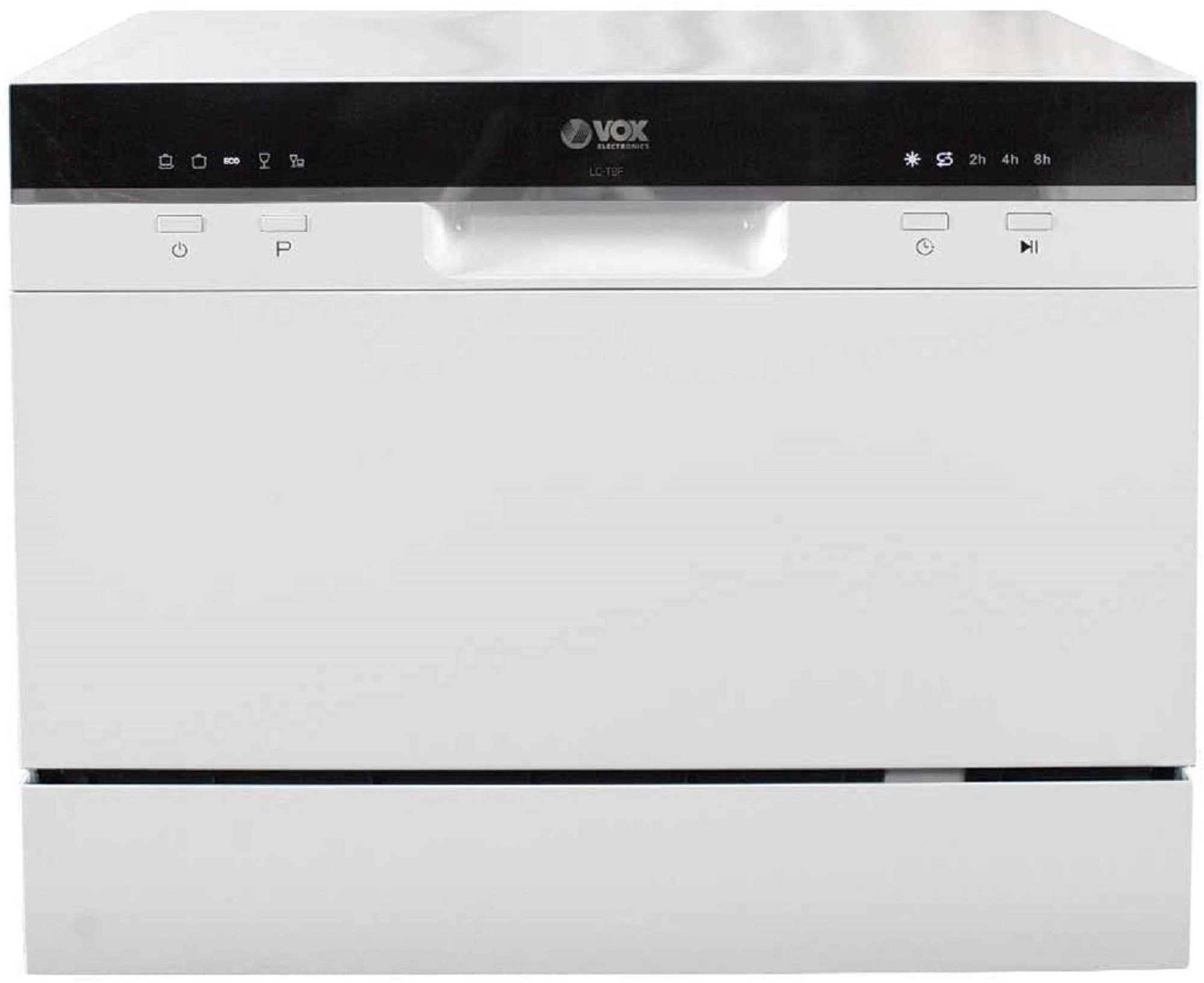 Lavavajillas de sobremesa digital 6 juegos 5 programas Programas Intensivo, Universal, ECO, Vidrio, Rápido Numero de temperaturas 5 Temperatura ° C 40-45-50-60-70 Silencioso: 49dB Color blanco Dimensiones del producto (WxHxD) 550 x 438 x 500 mm