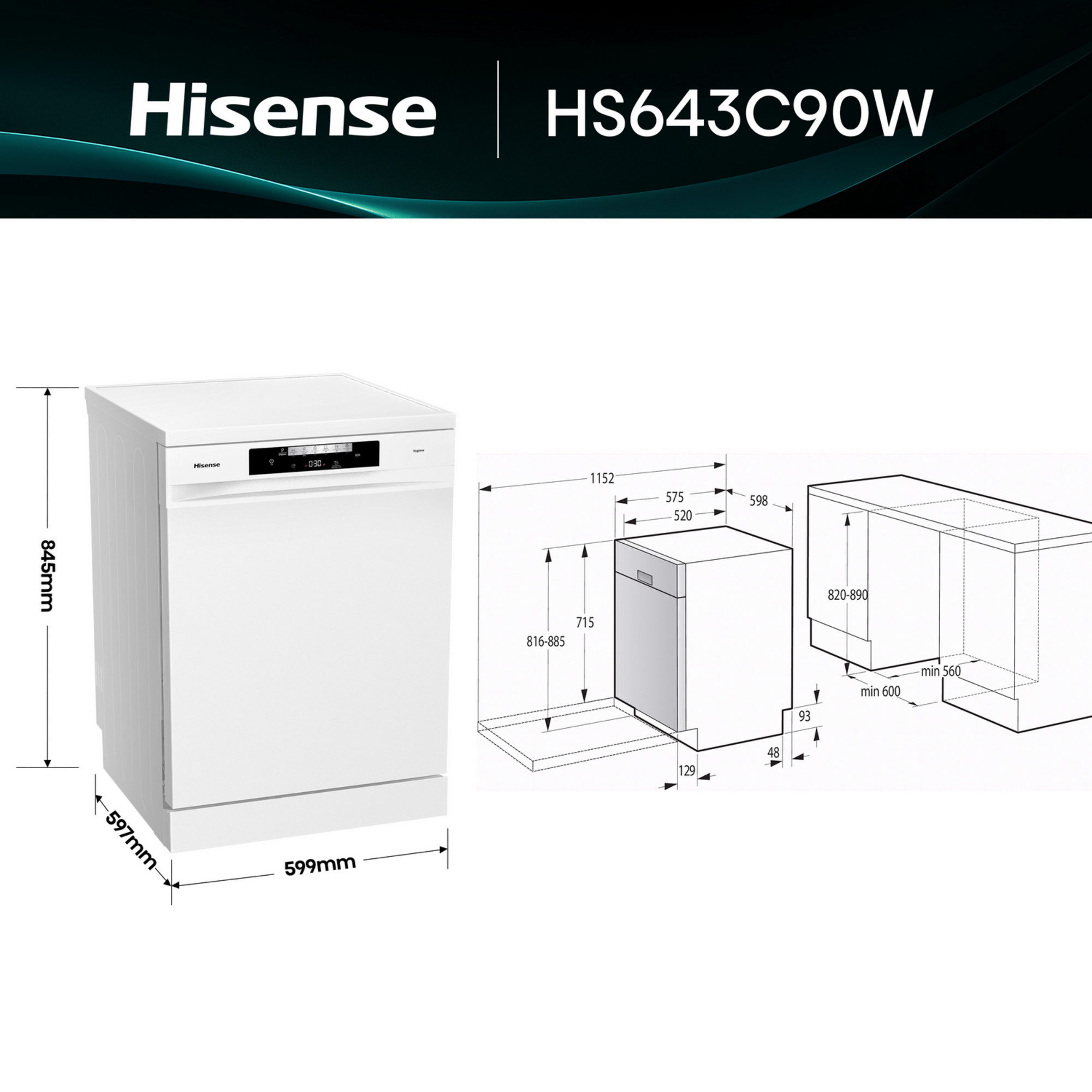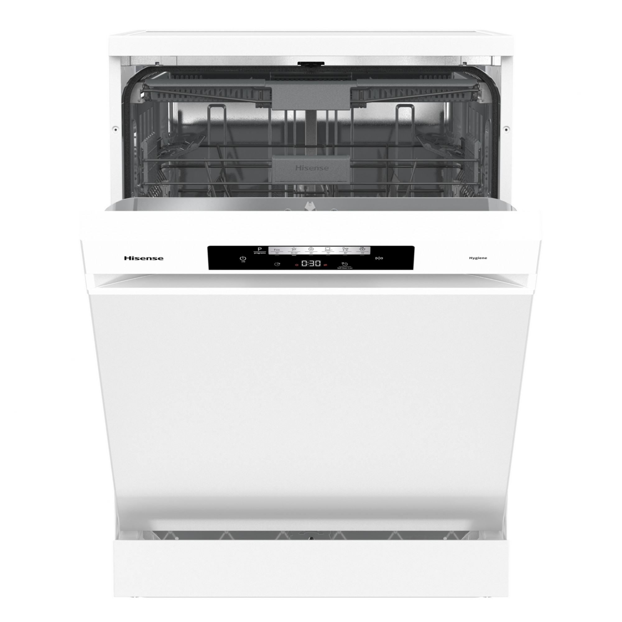 Lavavajillas – Hisense HS643C90W, 16 servicios, 6 programas, 59.9 cm, Tercera bandeja, Apertura automática, Blanco