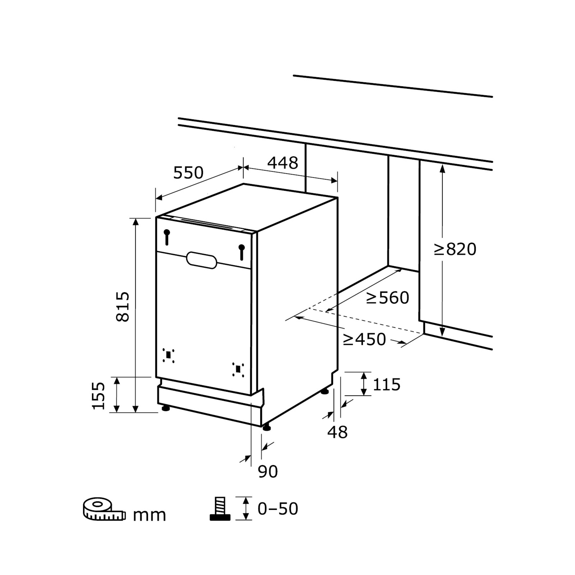 | Altura mínima del hueco | 820 mm |